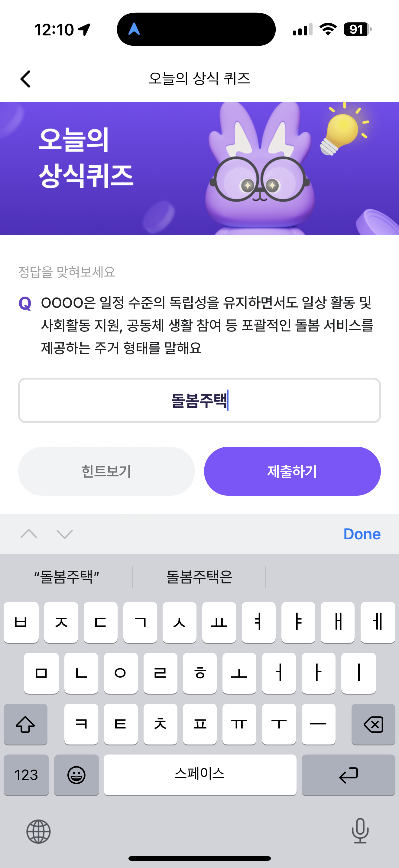 비트버니 오늘의 퀴즈 정답은 돌봄주택 입니다