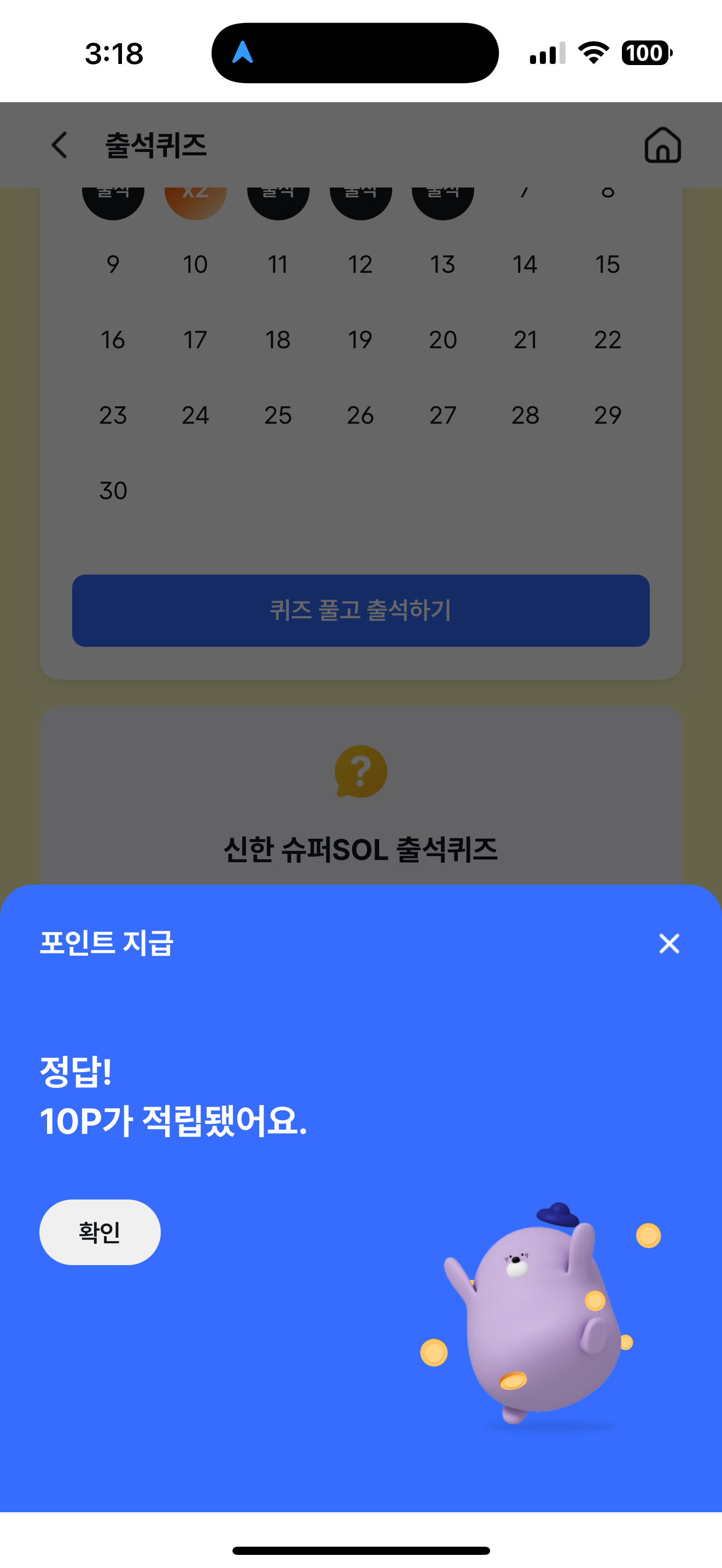 신한 슈퍼SOL 출석퀴즈 정답은 X 입니다