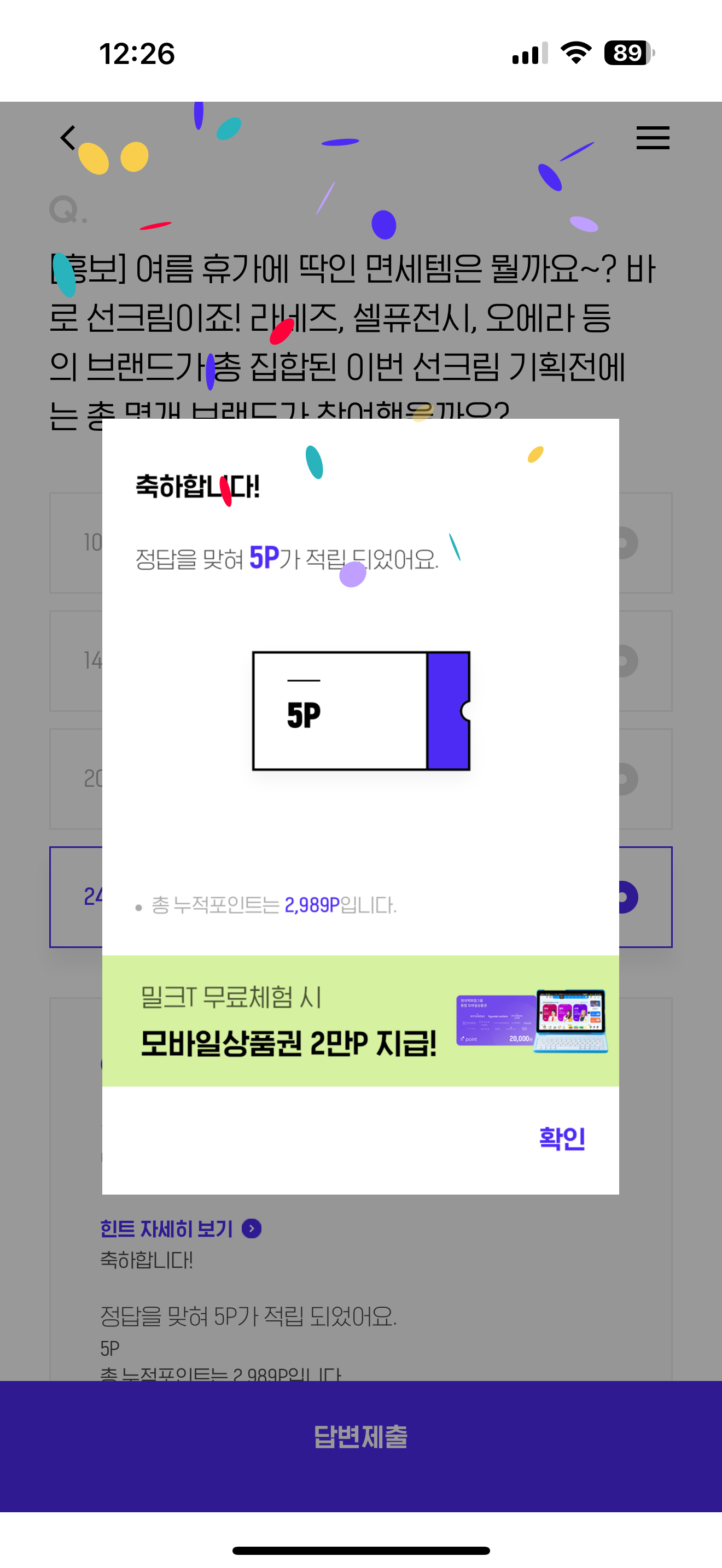 H포인트 퀴즈 6월 8일 정답(여름 휴가에 딱인 면세템은 뭘까요~? 바로 선크림이죠! 라네즈, 셀퓨전시, 오에라 등의 브랜드가 총 집합된 이번 선크림 기획전에는 총 몇개 브랜드가 참여했을까요?)