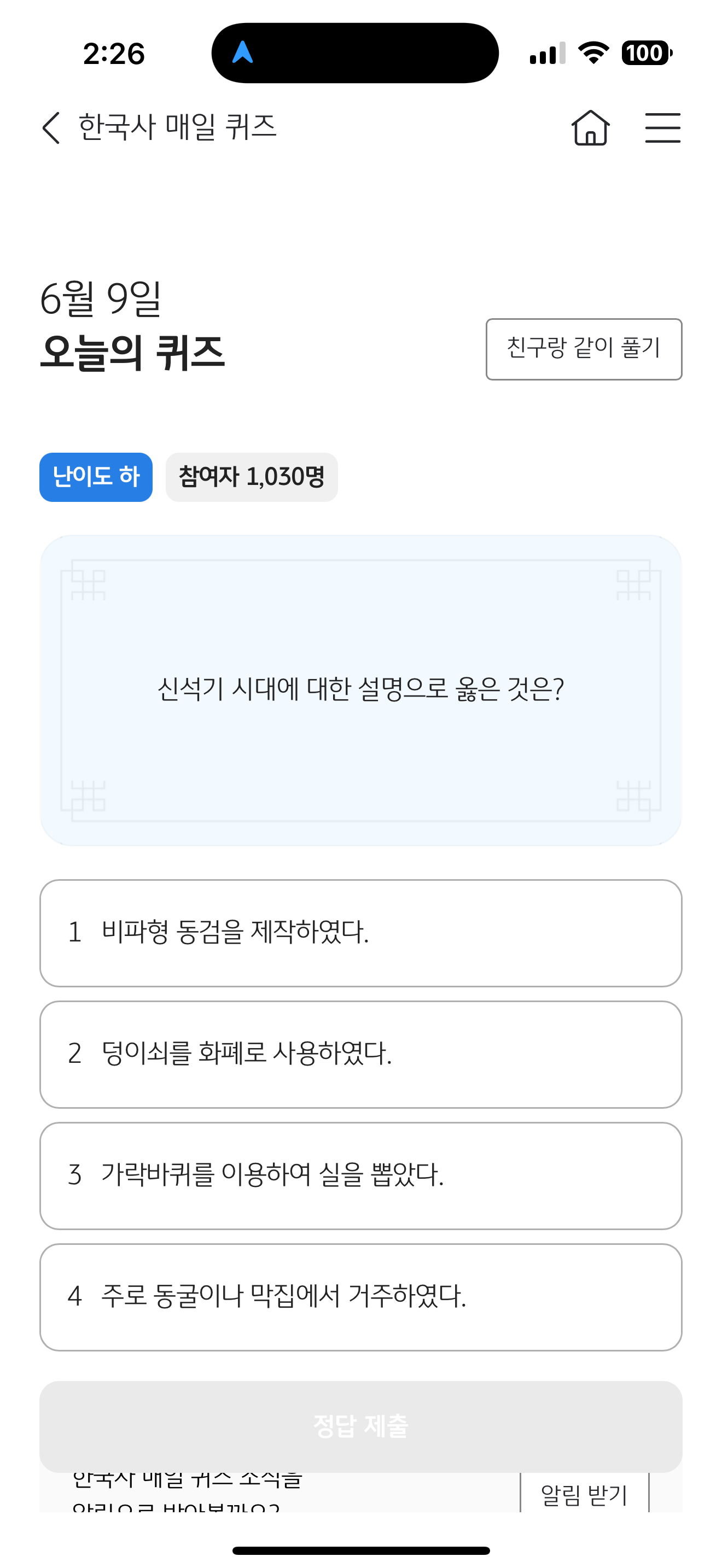 KB스타뱅킹 한국사 매일 퀴즈 6월 9일 문제입니다.