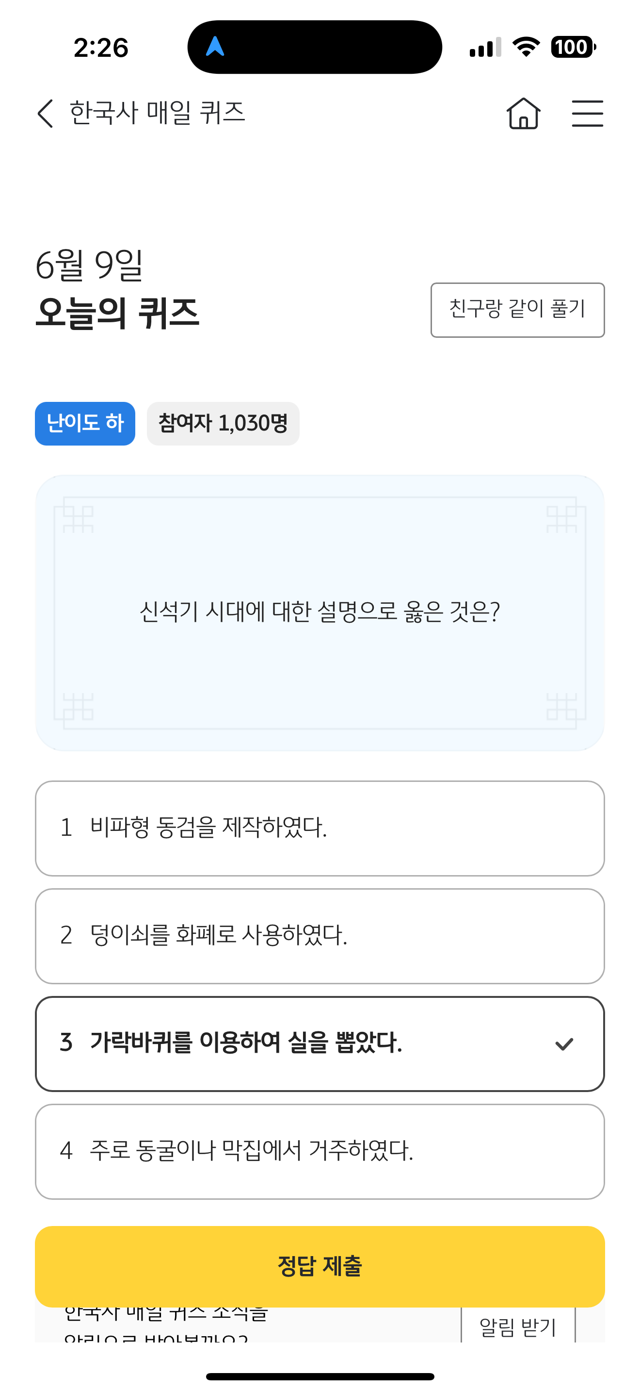 KB스타뱅킹 한국사 매일 퀴즈 정답은 가락바퀴를 이용하여 실을 뽑았다 입니다