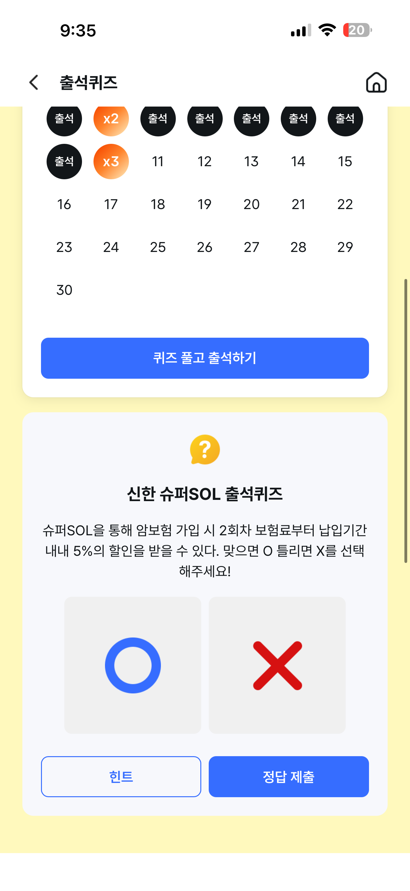 신한 슈퍼SOL 출석퀴즈 정답은 O 입니다