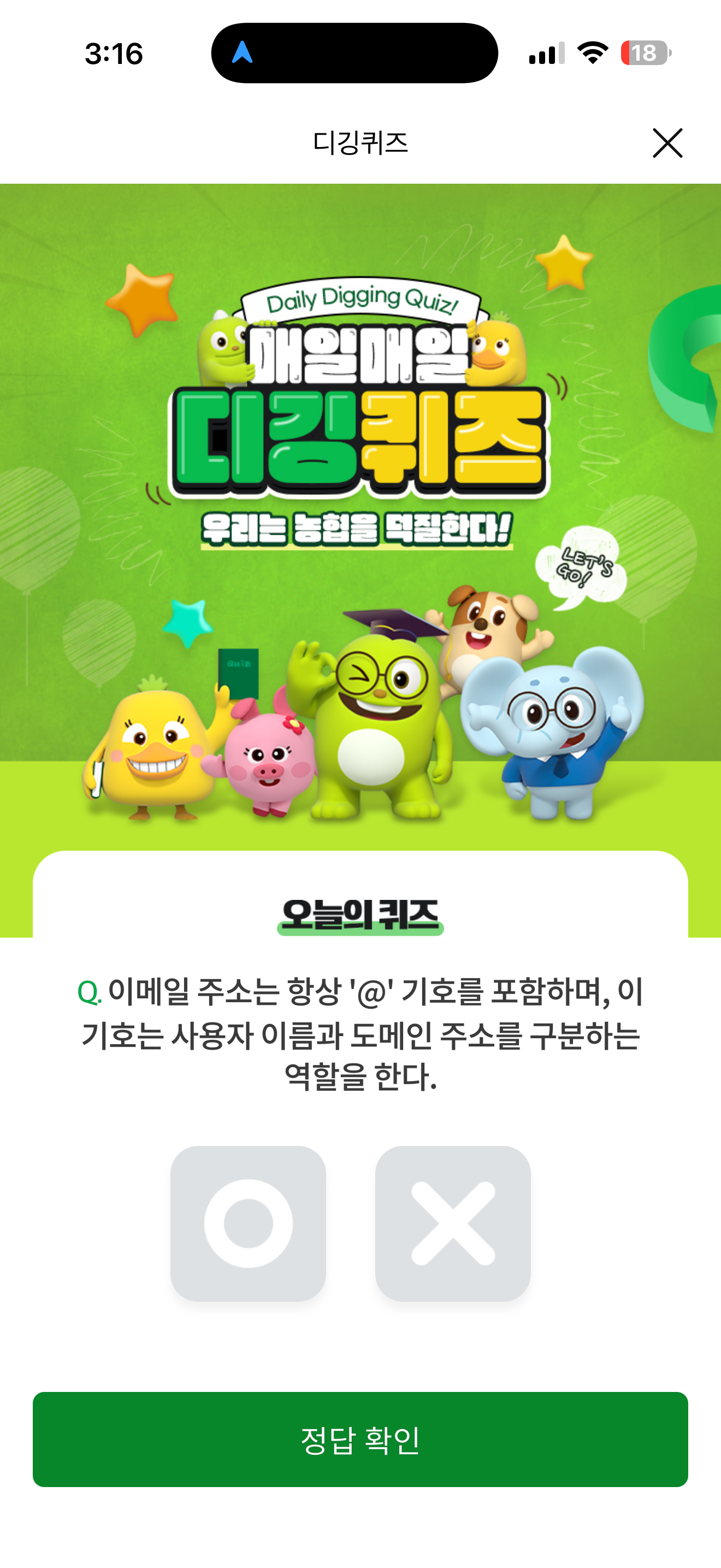 NH올원뱅크 디깅퀴즈 정답은 O 입니다