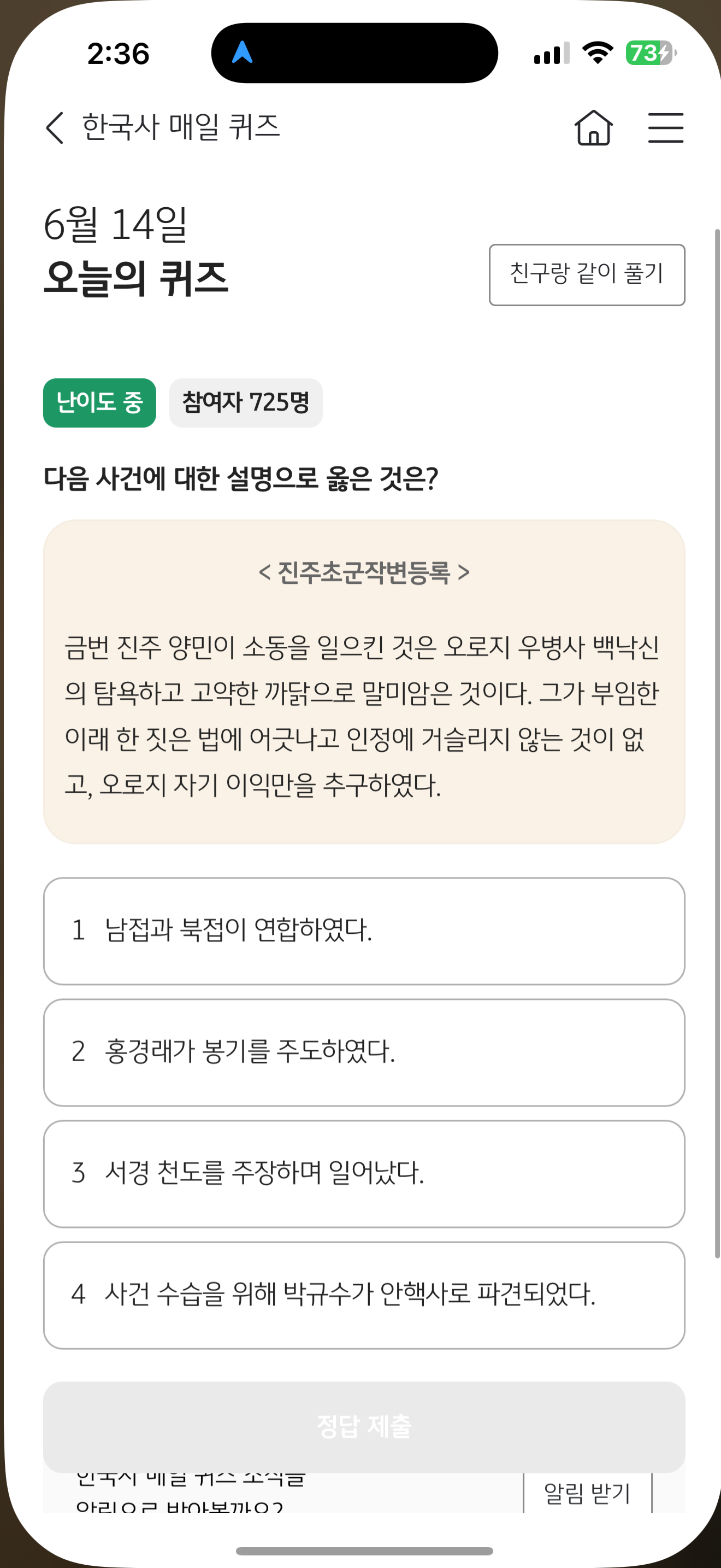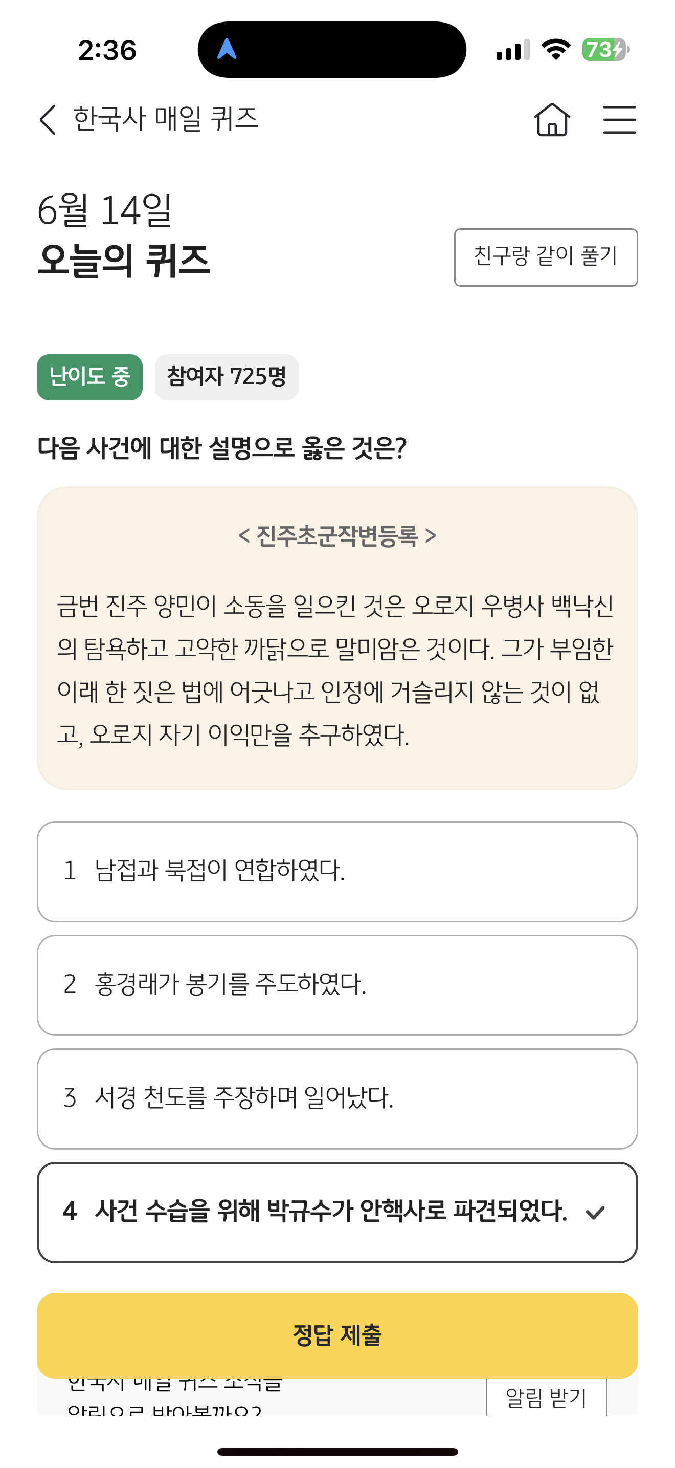 KB스타뱅킹 한국사 매일 퀴즈 6월 14일 문제입니다