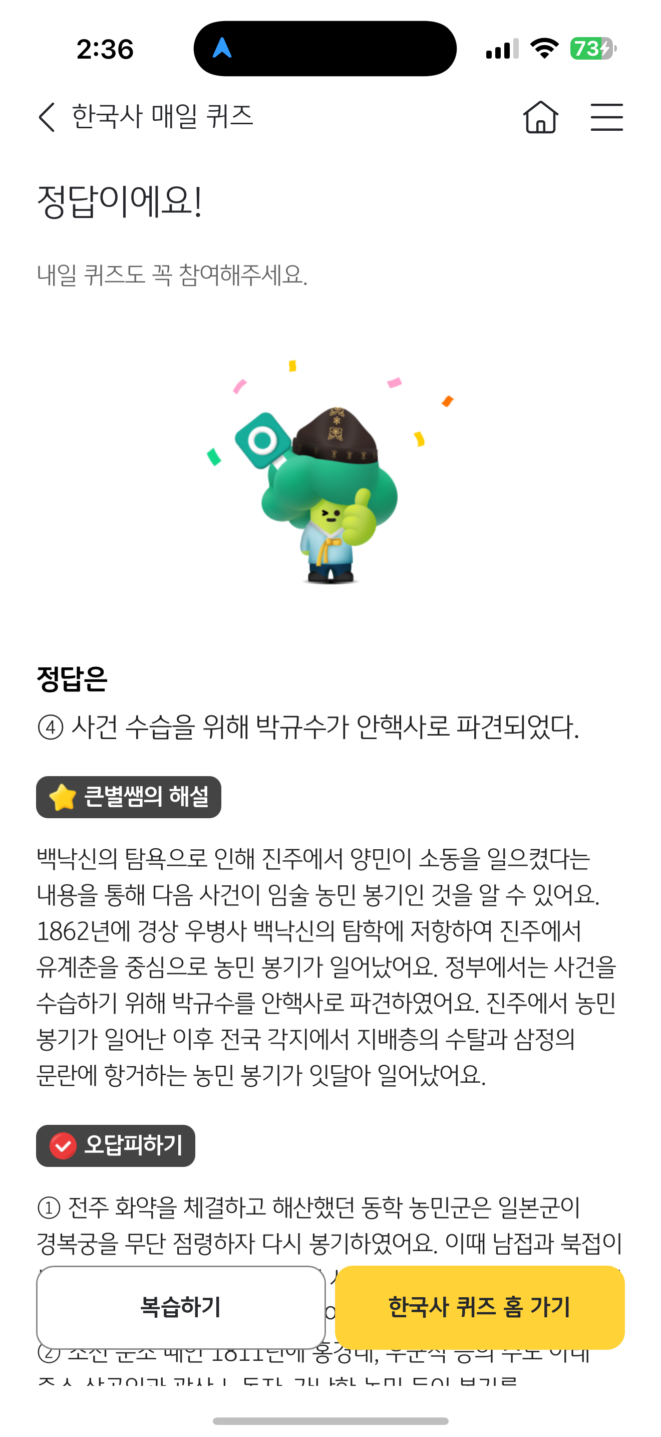 KB스타뱅킹 한국사 매일 퀴즈 정답은 사건 수습을 위해 박규수가 안핵사로 파견되었다 입니다