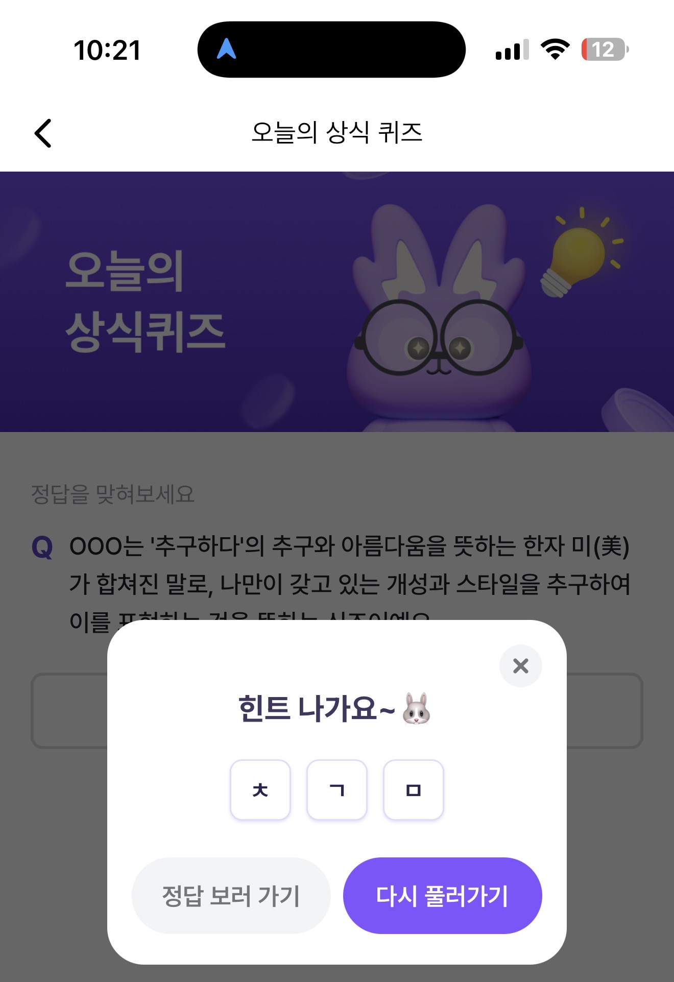 비트버니 오늘의 퀴즈 정답은 추구미 입니다
