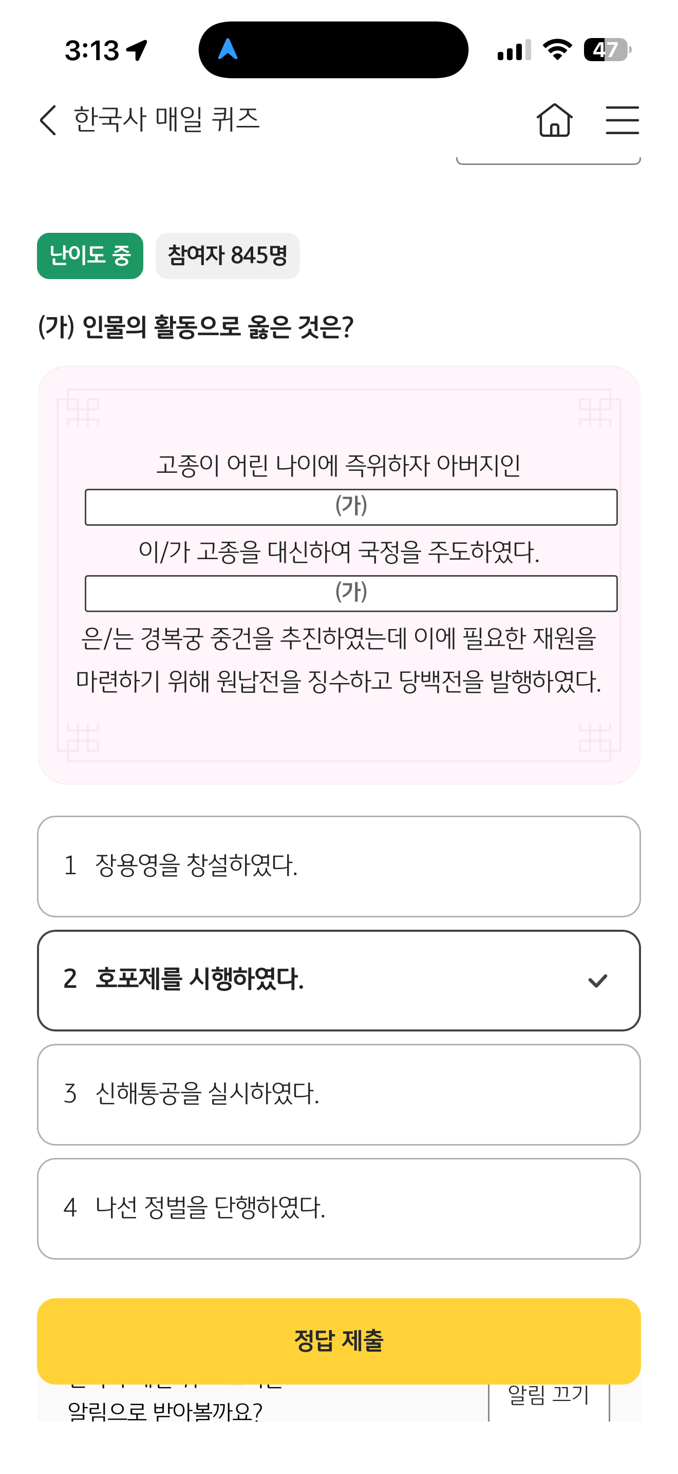KB스타뱅킹 한국사 매일 퀴즈 정답은 호포제를 시행하였다 입니다