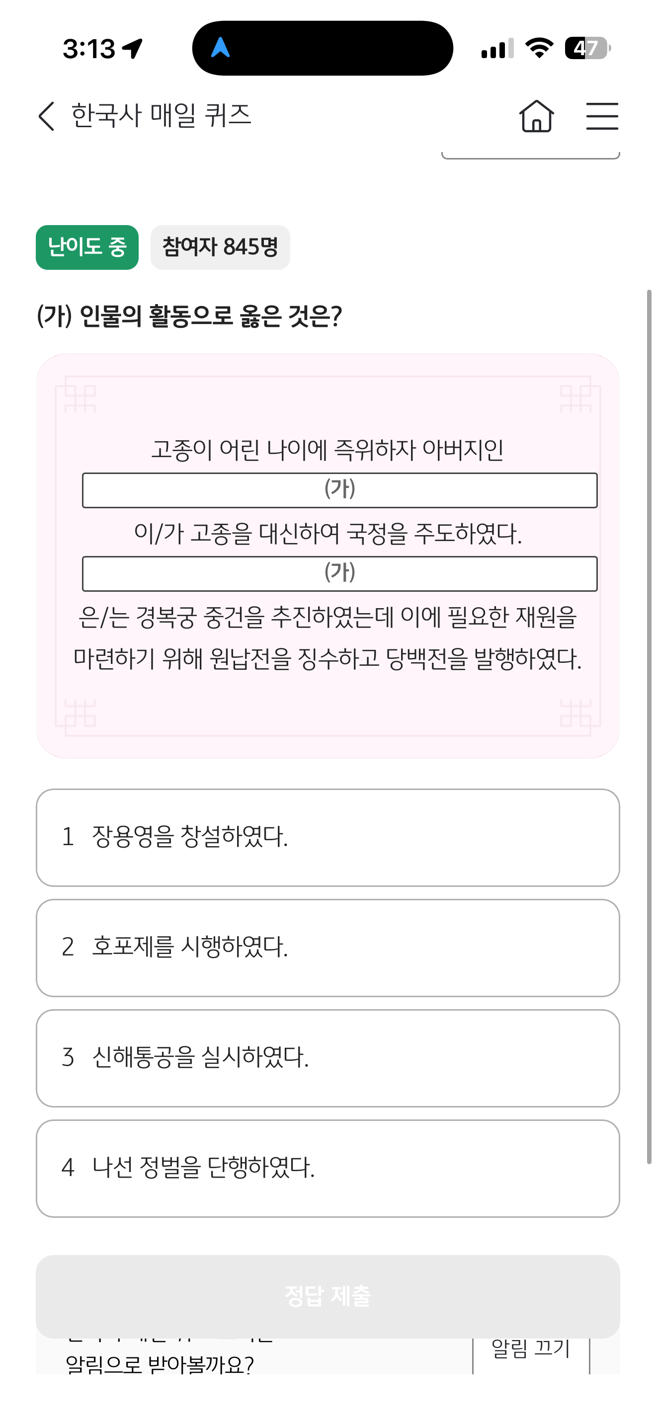 KB스타뱅킹 한국사 매일 퀴즈 6월 17일 정답(고종이 어린 나이에 즉위하자 아버지인 (가) 이/가 고종을 대신하여 국정을 주도하였다)