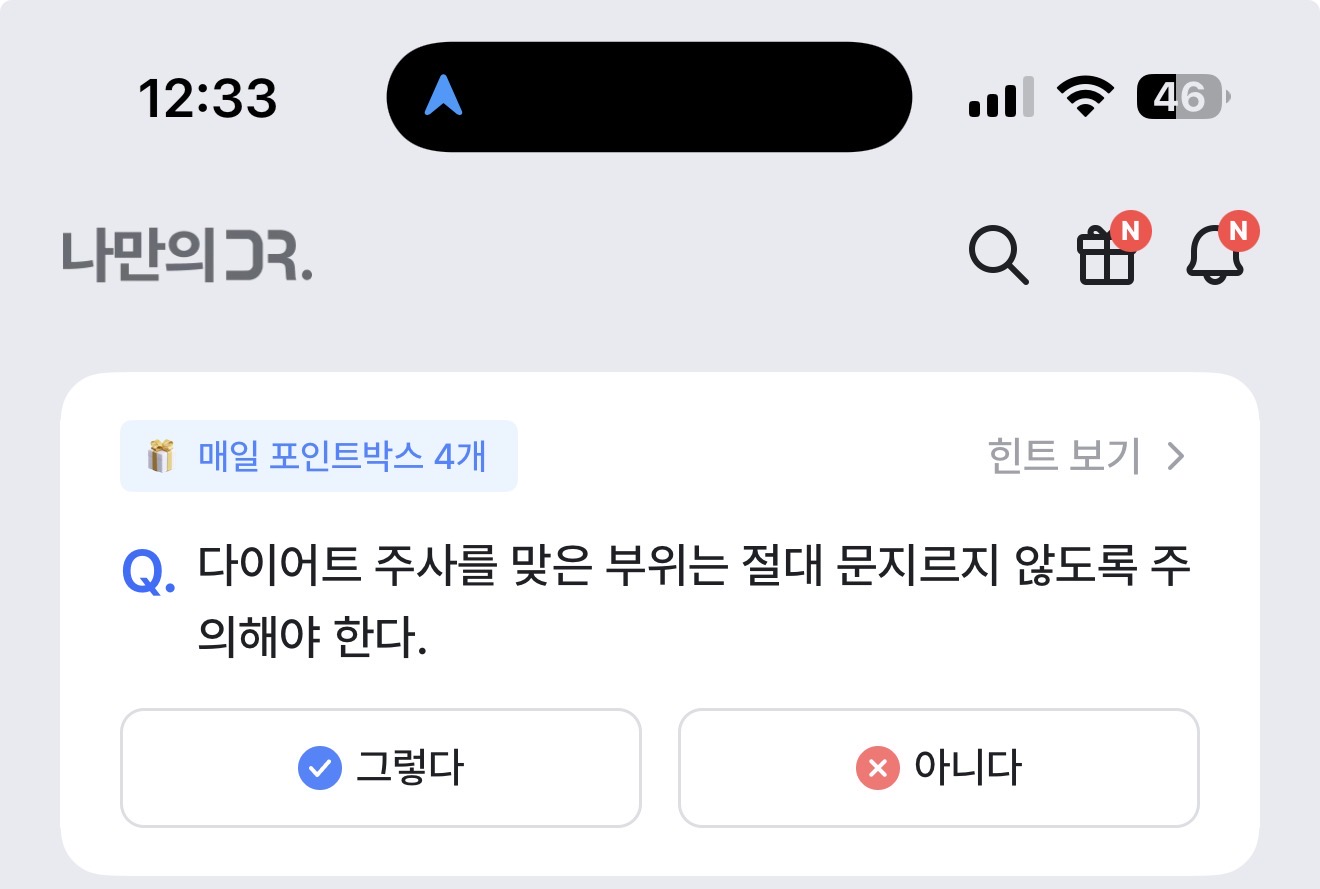 다이어트 주사를 맞은 부위는 절대 문지르지 않도록 주의해야 한다. 그렇다 아니다 선택하면 되는데요. 요즘 다이어트 주사에 대한 인기가 뜨겁습니다. 실제 효과가 있다고 알려지면서 많은 분들이 관심을 갖고 시도하는데요. 잘 참고해 보시기 바랍니다.
