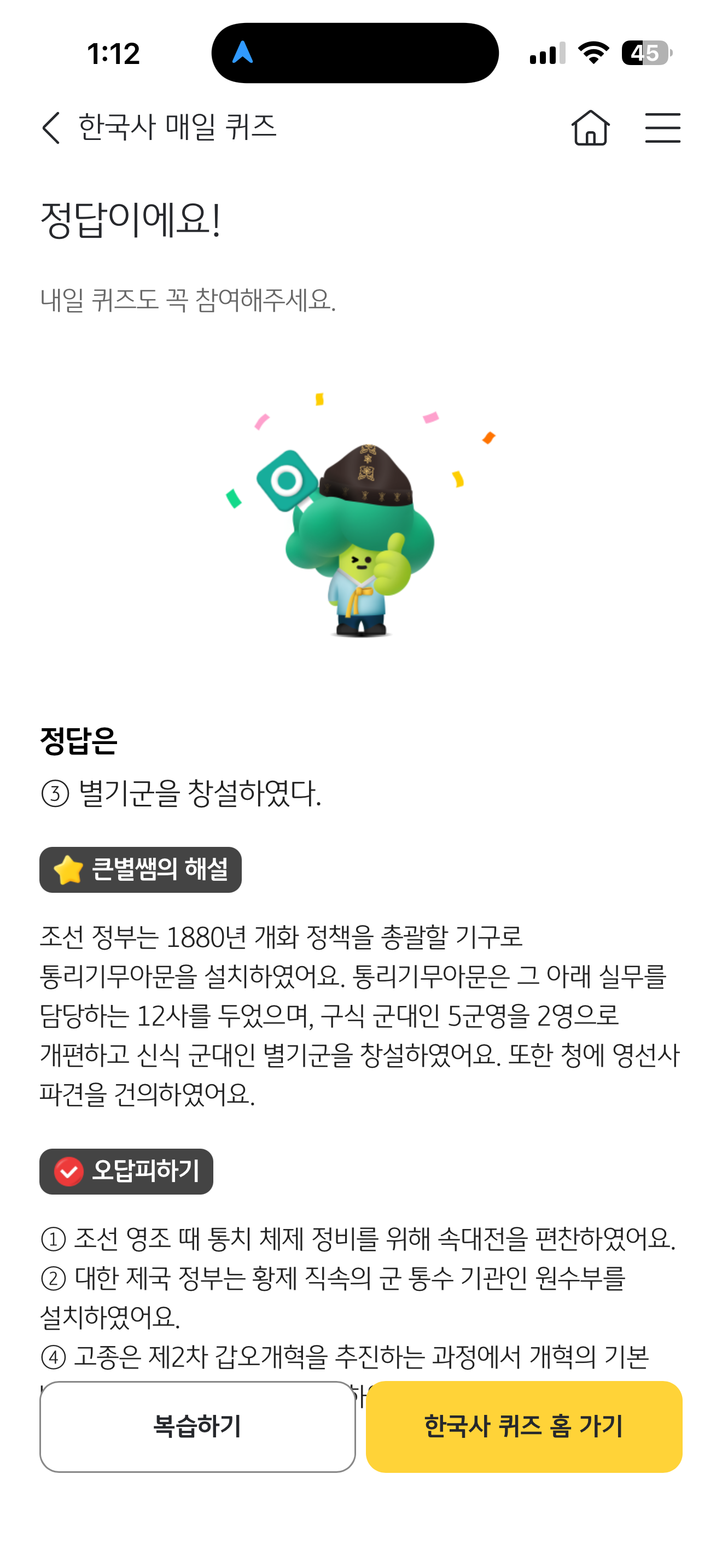 KB스타뱅킹 한국사 매일 퀴즈 정답은 별기군을 창설하였다 입니다
