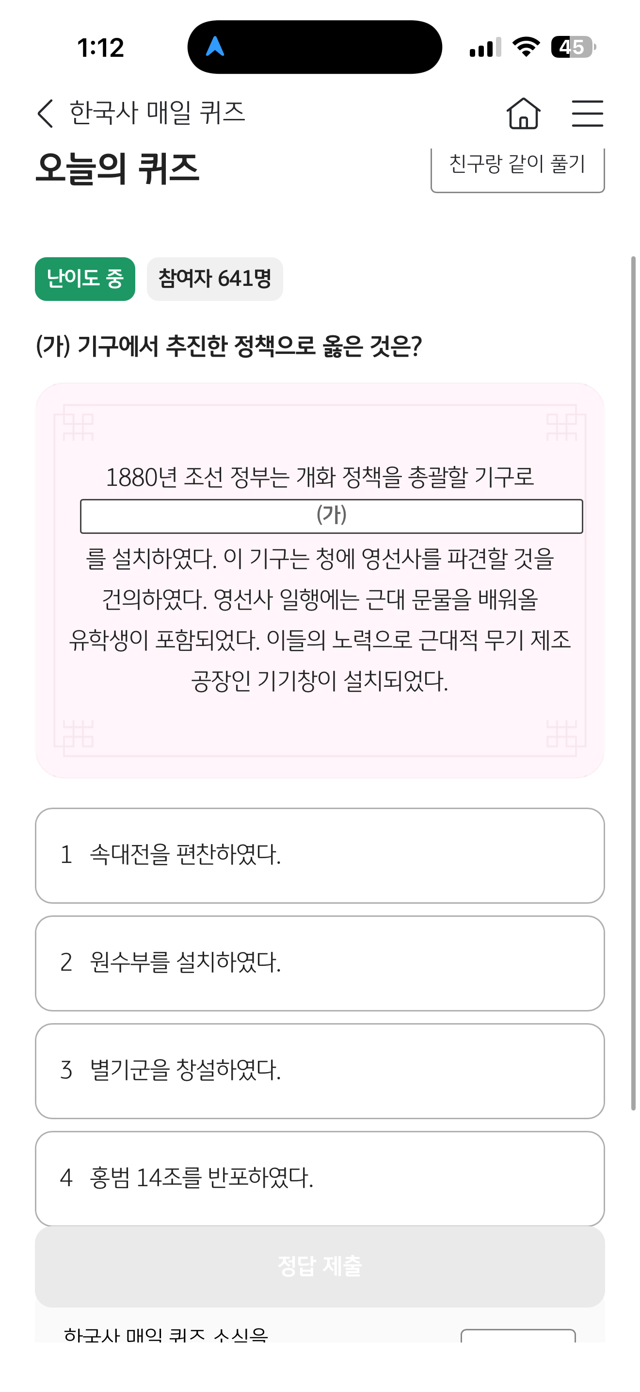 KB스타뱅킹 한국사 매일 퀴즈 6월 18일 문제입니다