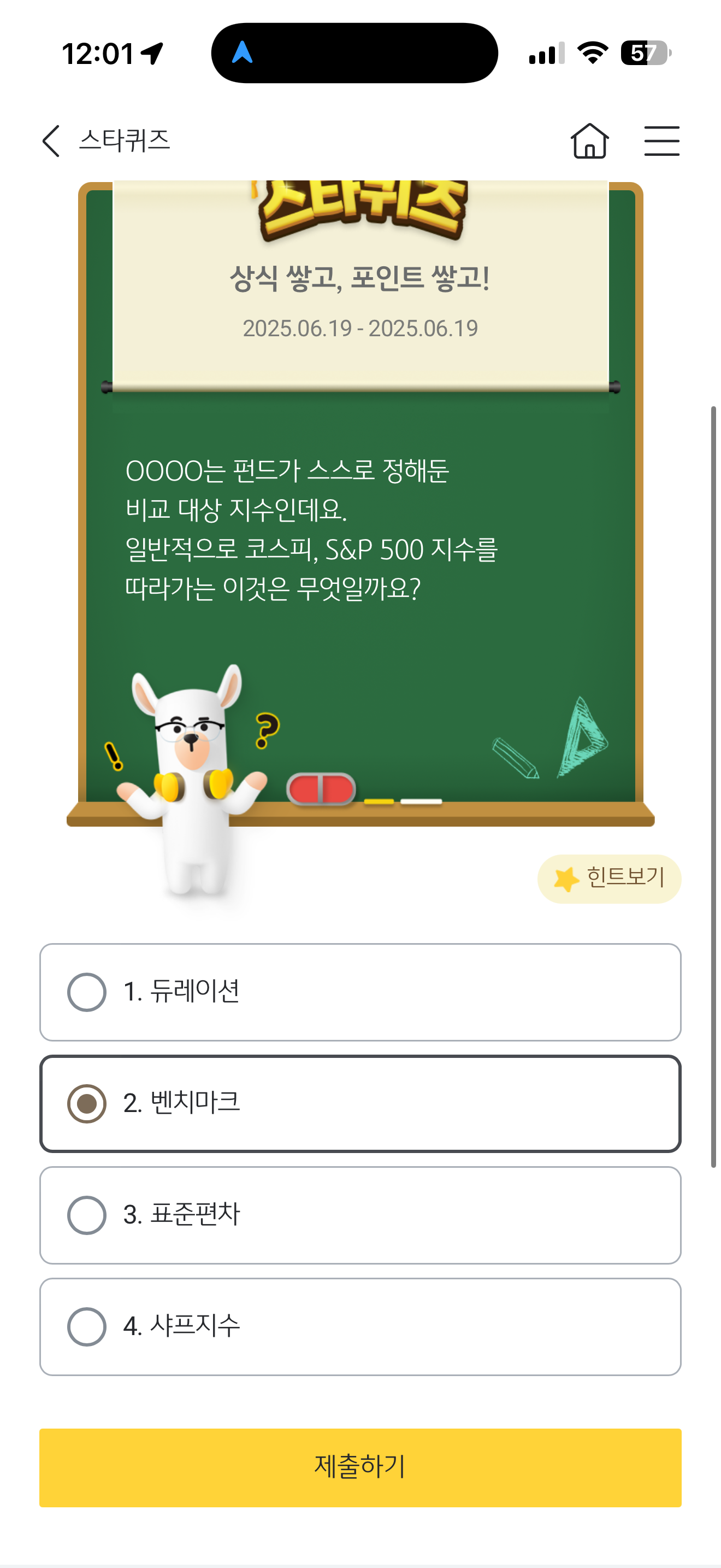 KB스타뱅킹 스타퀴즈 정답은 벤치마크 입니다