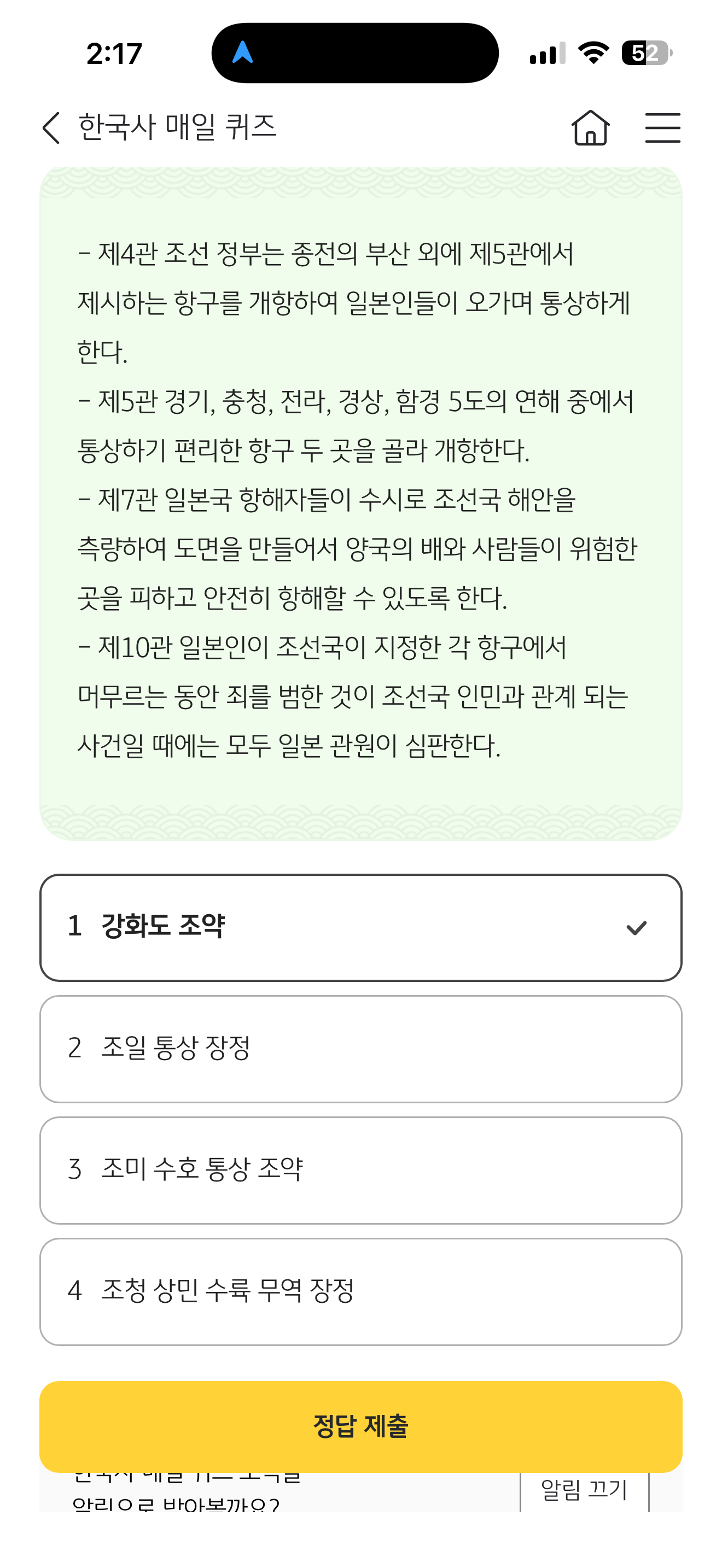 KB스타뱅킹 한국사 매일 퀴즈 정답은 강화도 조약 입니다