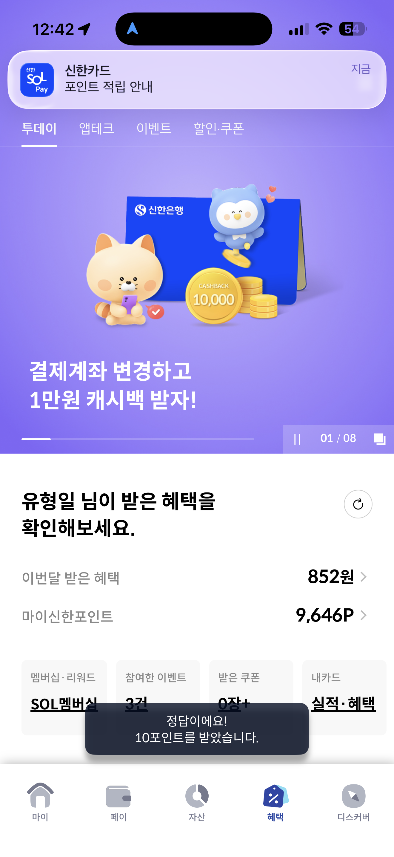 신한카드 퀴즈팡팡 정답은 자산 입니다