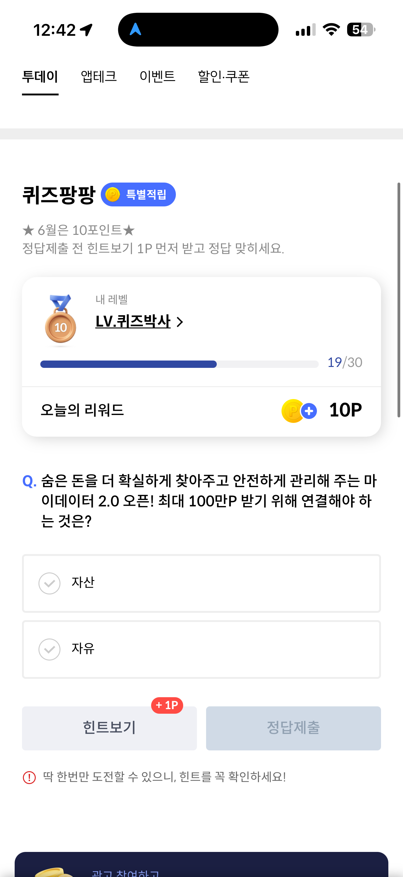 숨은 돈을 더 확실하게 찾아주고 안전하게 관리해 주는 마음데이터 2.0 오픈! 최대 100만P 받기 위해 연결해야 하는 것은? 보기는 1. 자산 2. 자유 입니다. 숨은 돈을 찾아줄 수 있다고 합니다. 잘 참고해서 혹시나 방치되고 있는 돈이 있는지 확인해 보세요