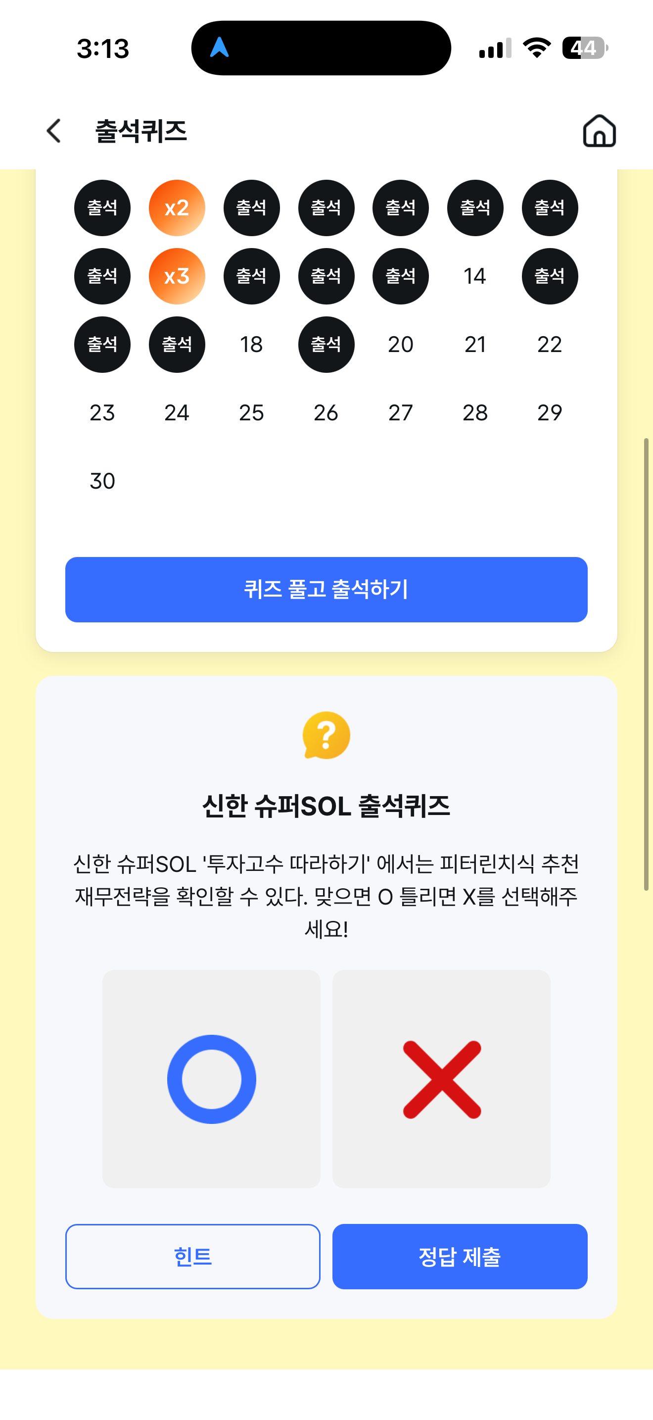 신한 슈퍼SOL 출석퀴즈 정답은 O 입니다