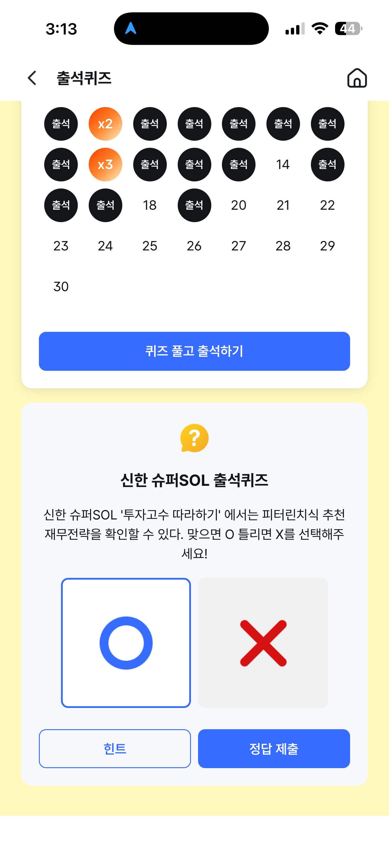 신한 슈퍼SOL 출석퀴즈 정답은 O 입니다