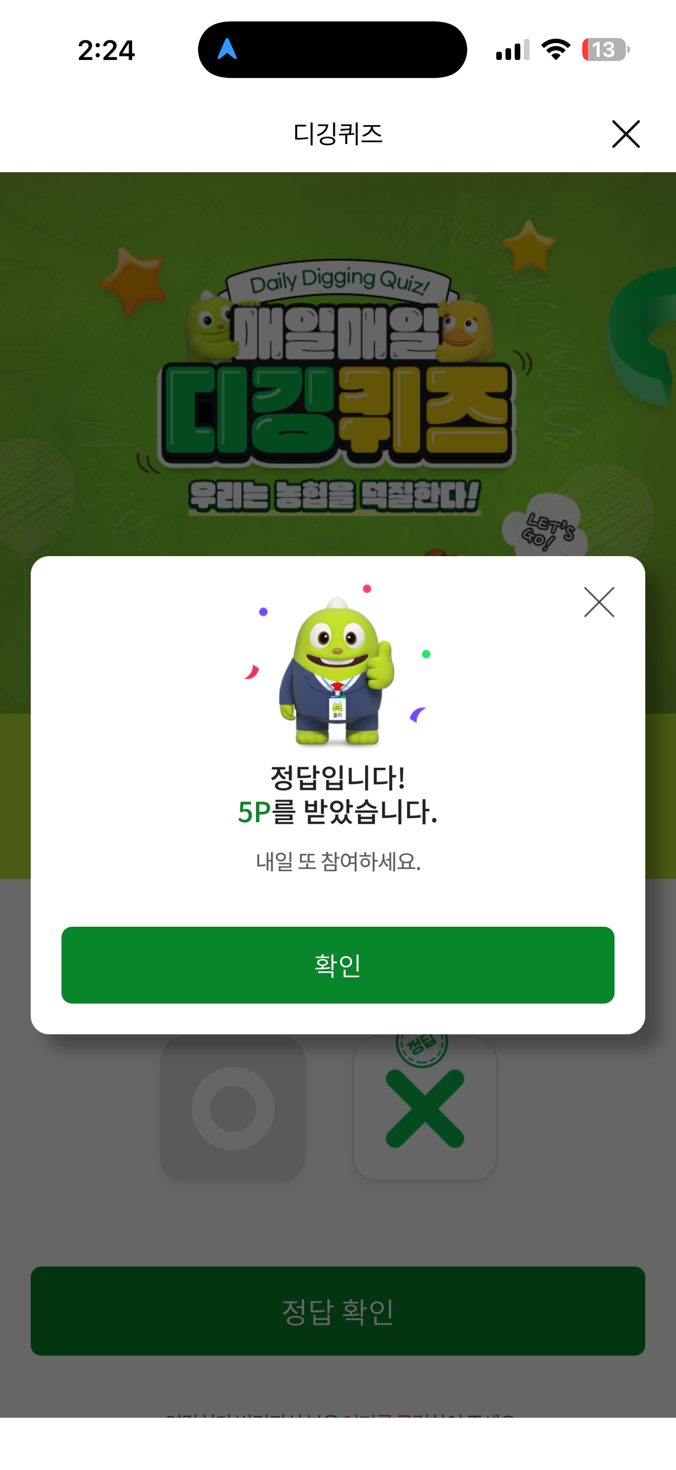 NH올원뱅크 디깅퀴즈 정답은 X 입니다