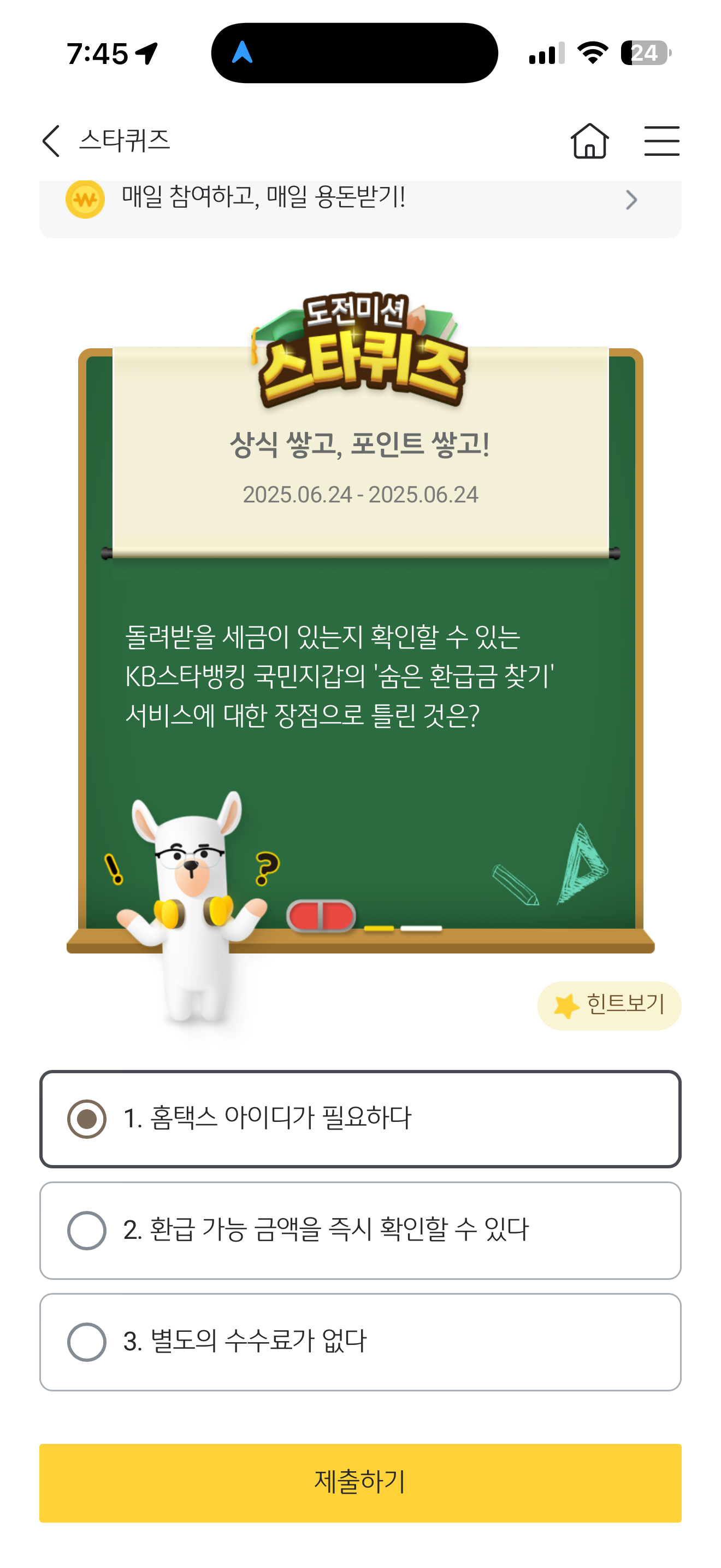 KB스타뱅킹 스타퀴즈 6월 24일 문제입니다