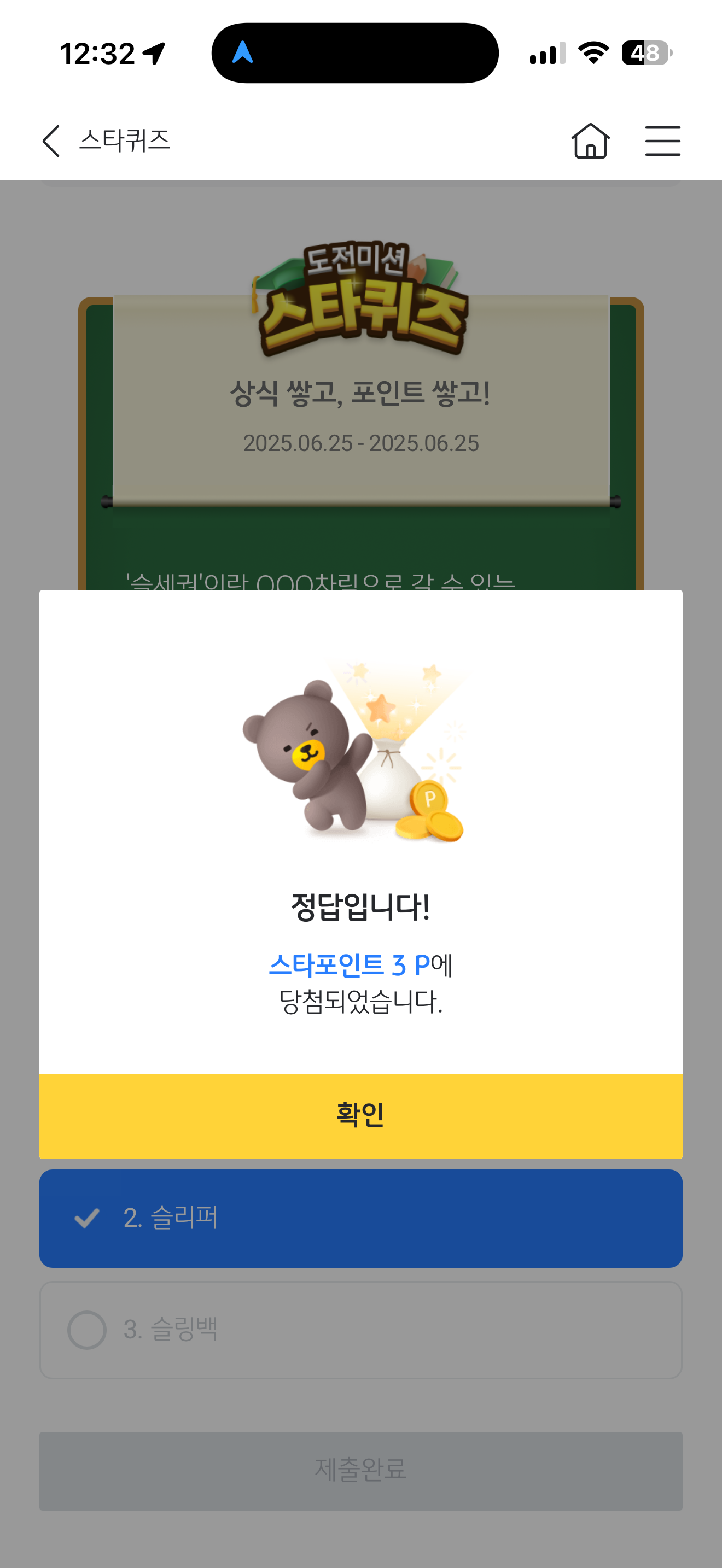 KB스타뱅킹 스타퀴즈 정답은 슬리퍼 입니다
