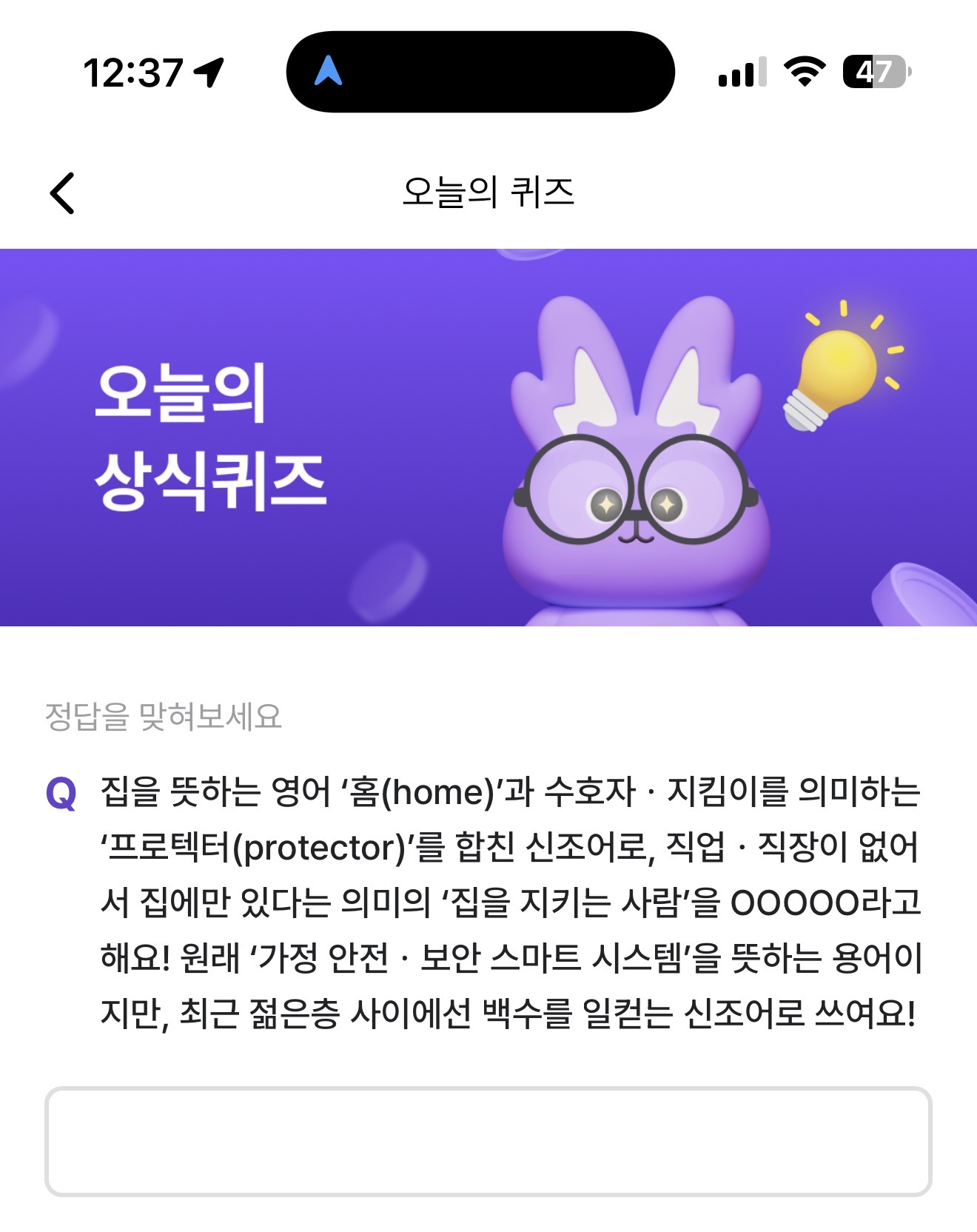 비트버니 오늘의 퀴즈 정답은 홈프로텍터 입니다