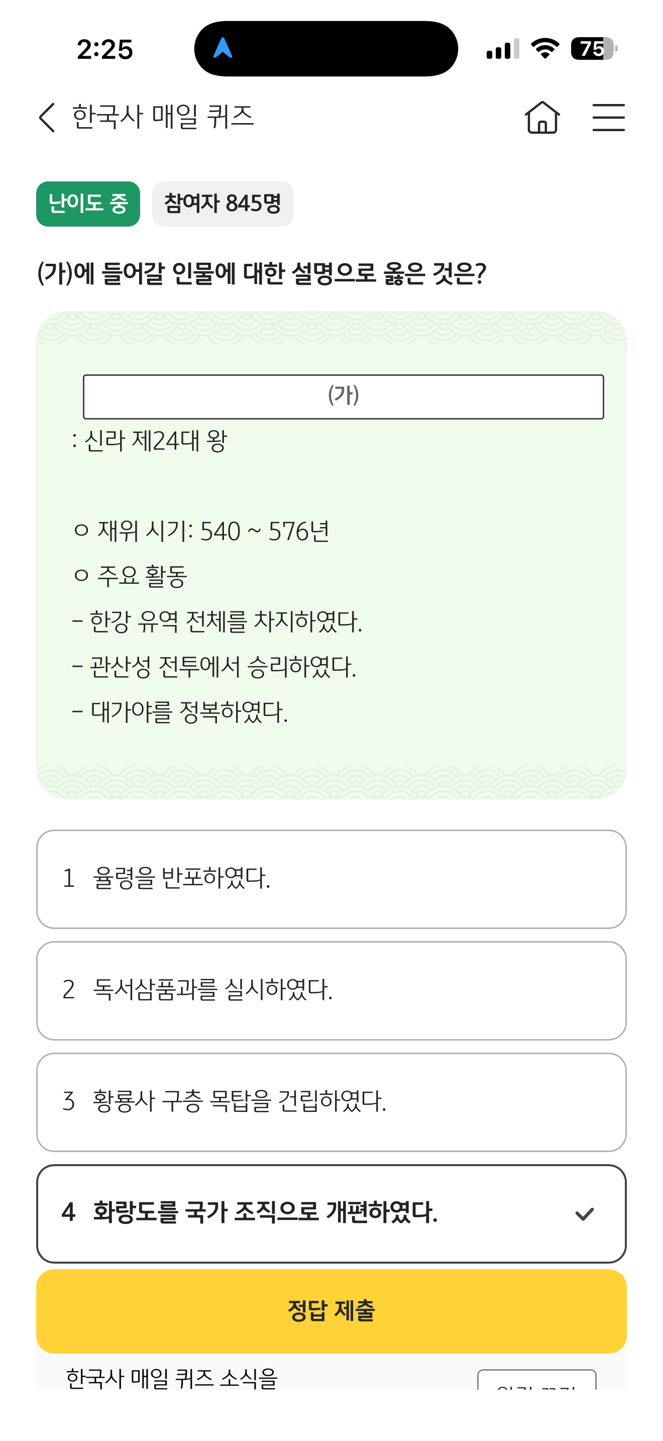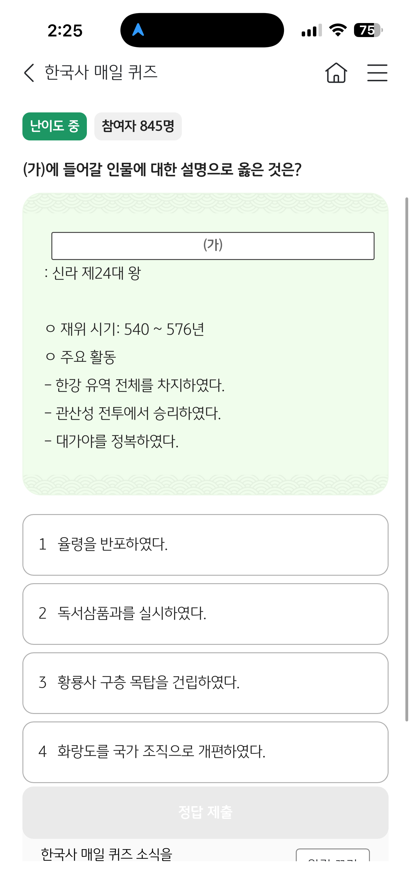 KB스타뱅킹 한국사 매일 퀴즈 6월 26일 정답(신라 제24대 왕 재위 시기 540 ~ 576년 )