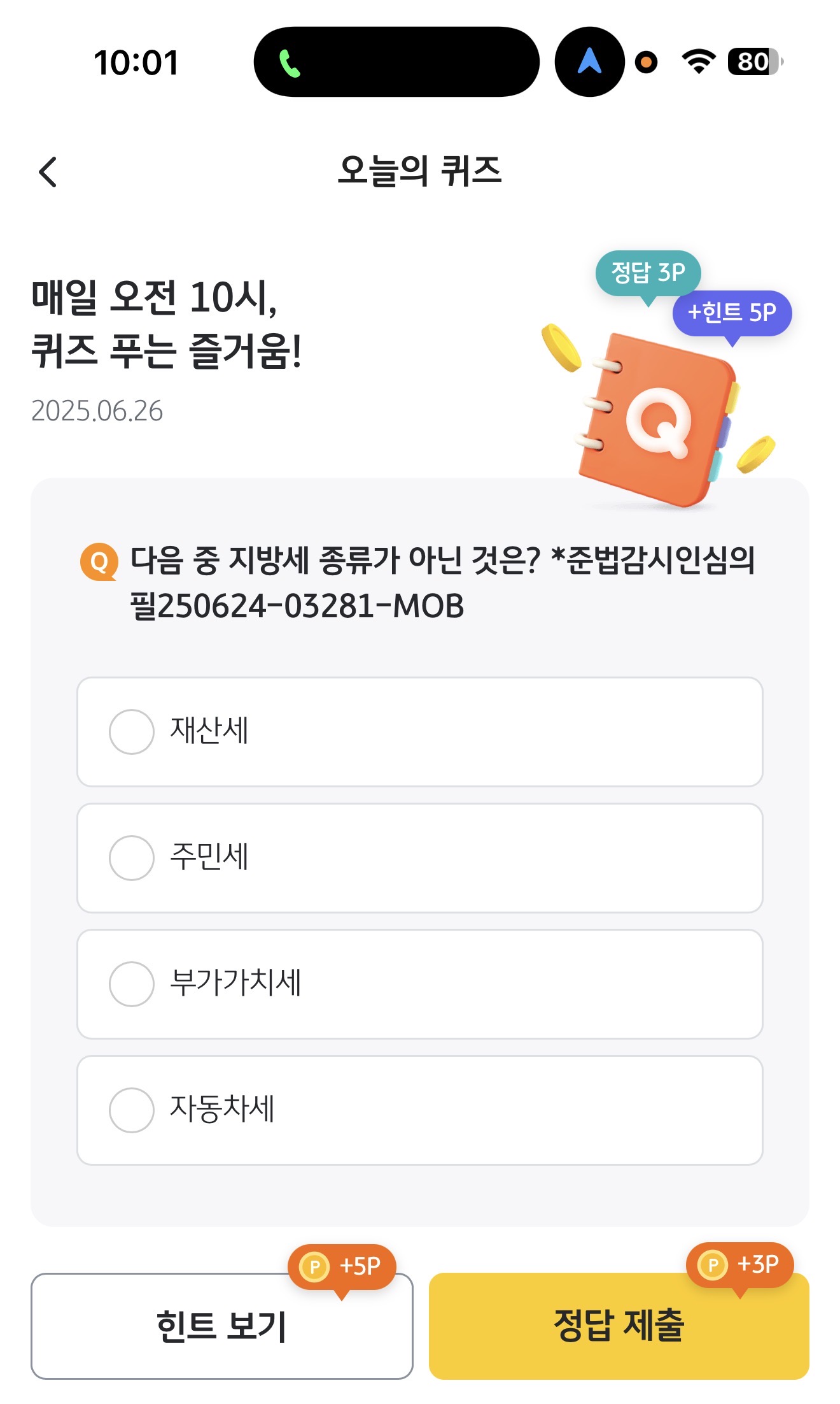 다음 중 지방세 종류가 아닌 것은? *준법감시인심의필250624-03281-MOB 보기는 1. 재산세 2. 주민세 3. 부가가치세 4. 자동차세 입니다. 지방세가 뭘까요? 지방세 항목도 여러가지가 있는데요. 지방세 종류가 아닌 것 참고해 두세요