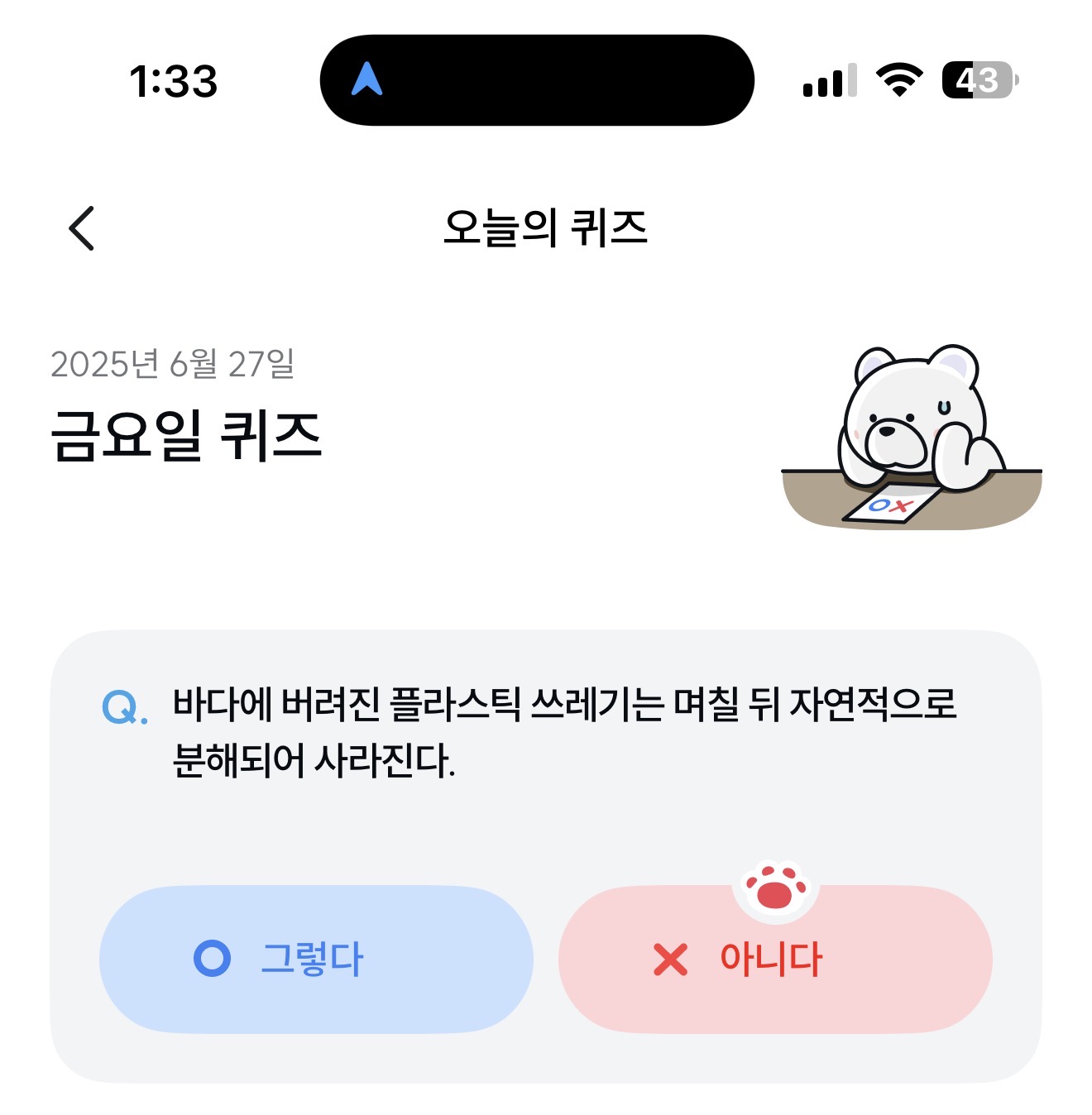 기후행동 기회소득 오늘의 퀴즈 정답은 아니다 입니다