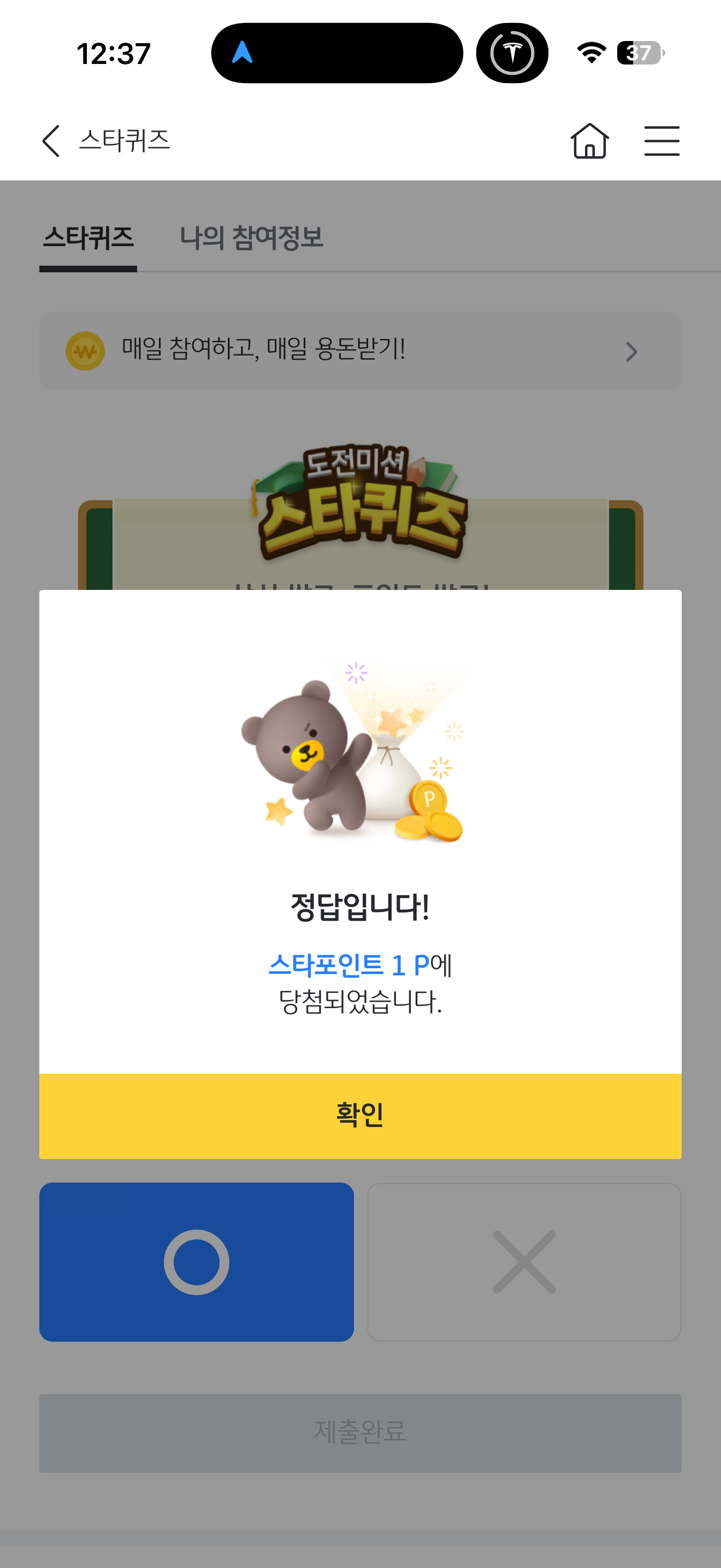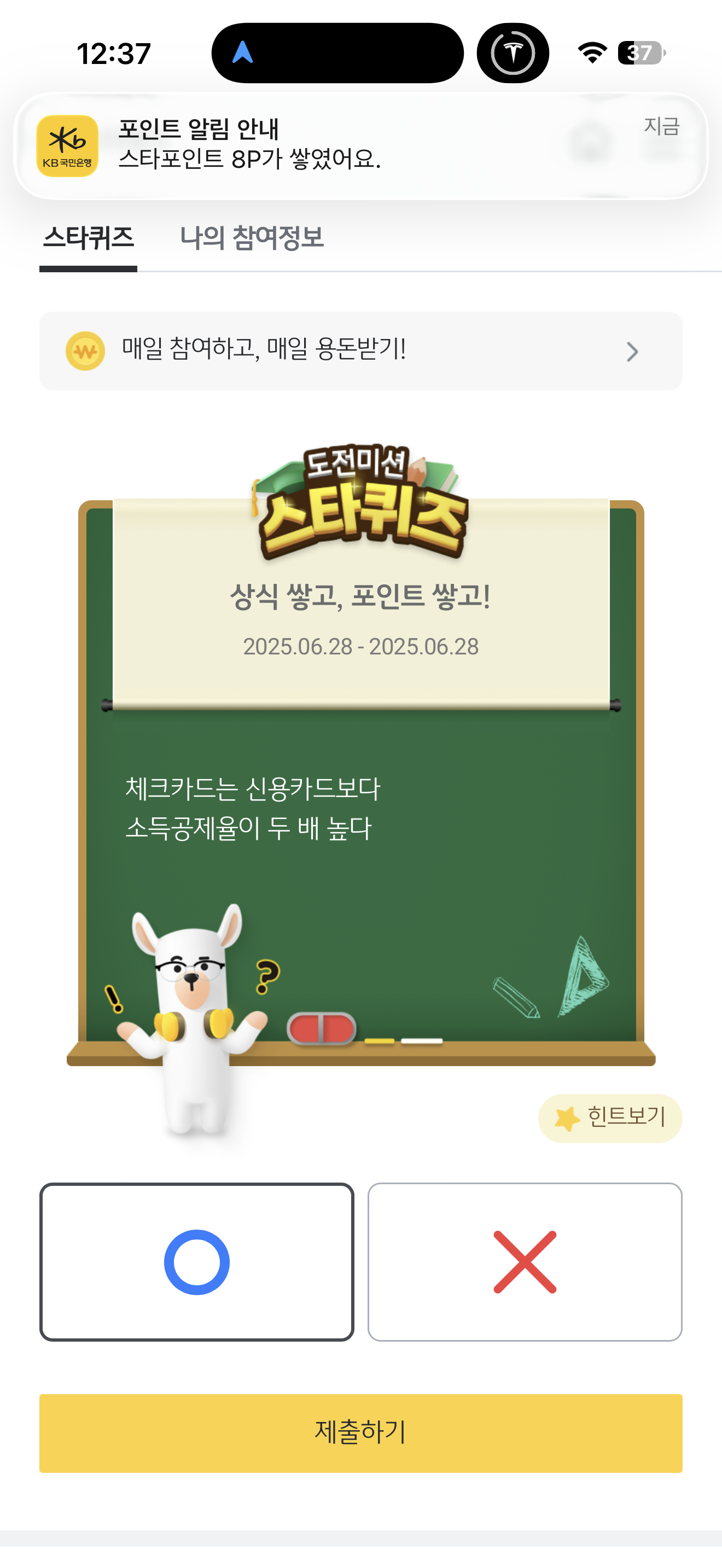 KB스타뱅킹 스타퀴즈 정답은 O 입니다