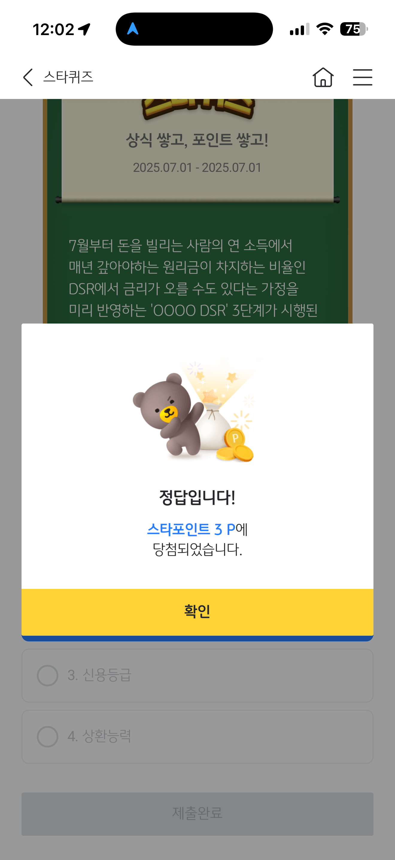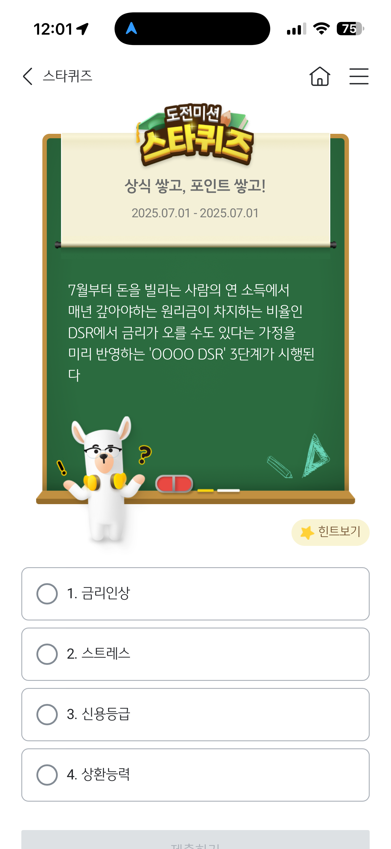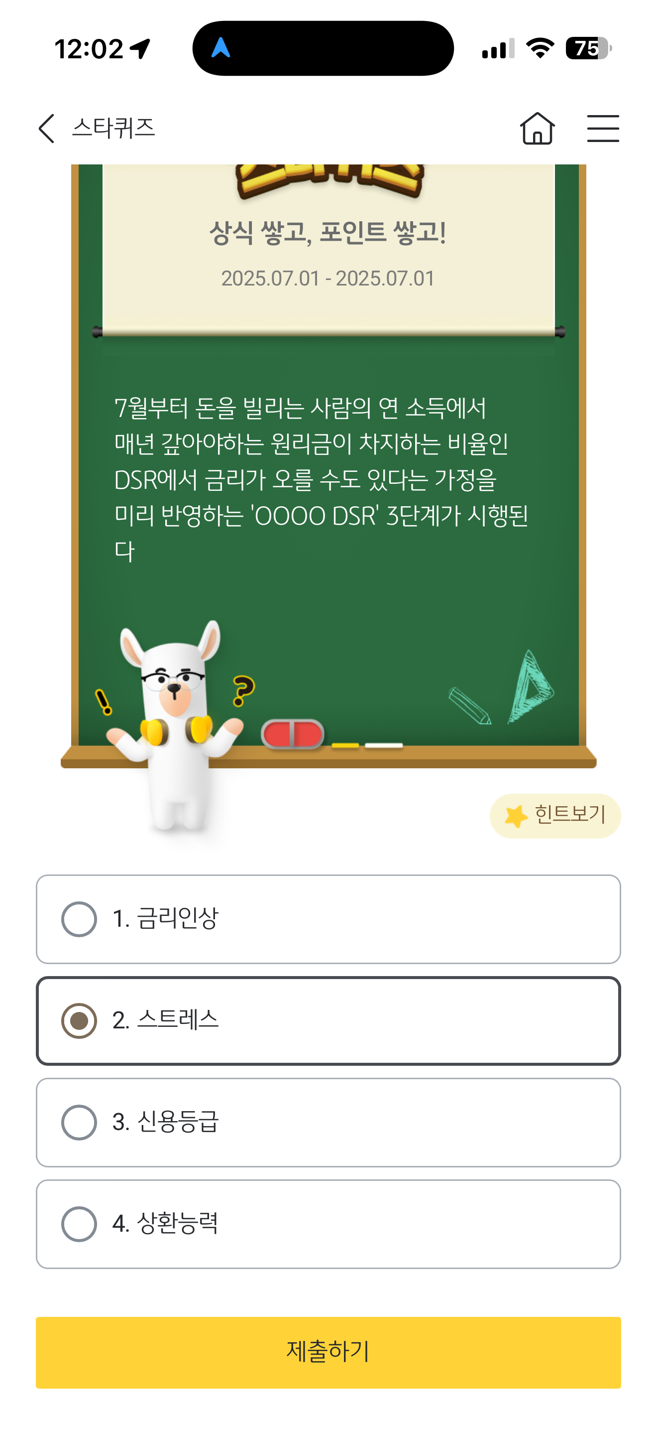KB스타뱅킹 스타퀴즈 정답은 스트레스 입니다