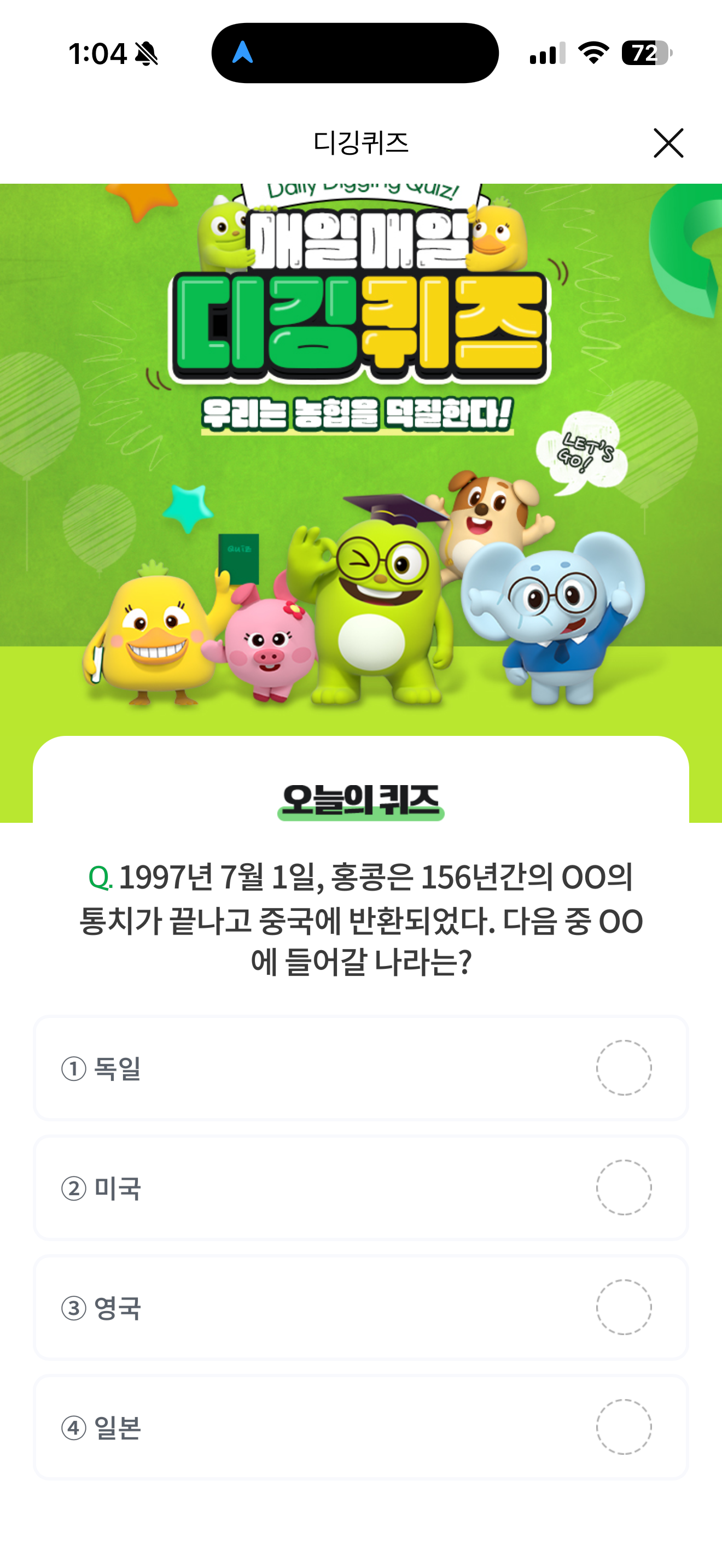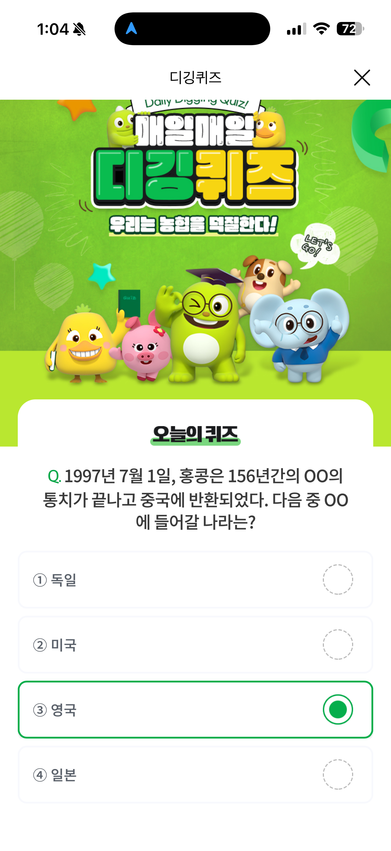 NH올원뱅크 디깅퀴즈 정답은 영국 입니다