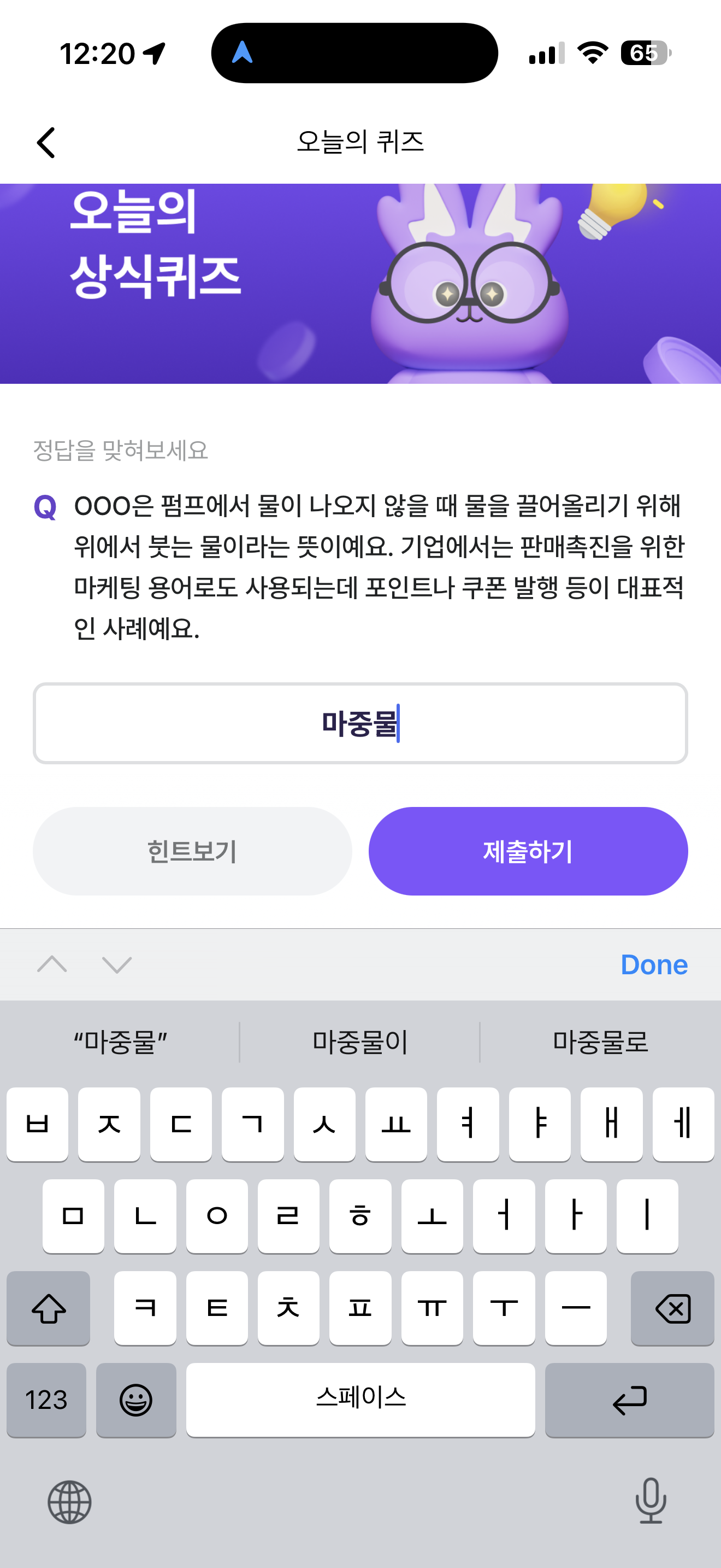비트버니 오늘의 퀴즈 초성 힌트는 ㅁㅈㅁ 입니다