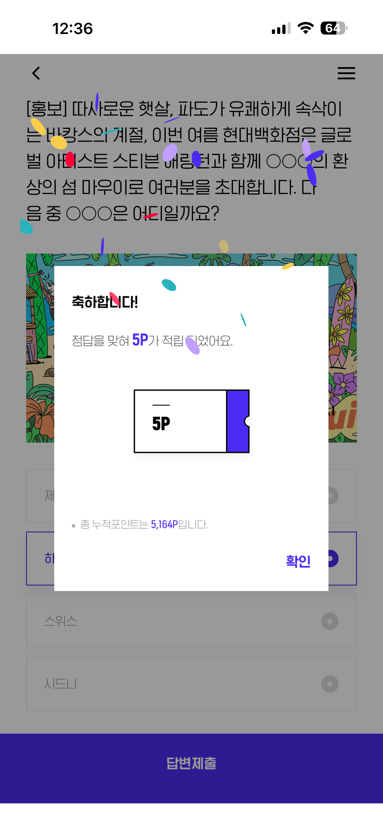 H포인트 퀴즈 정답은 하와이 입니다