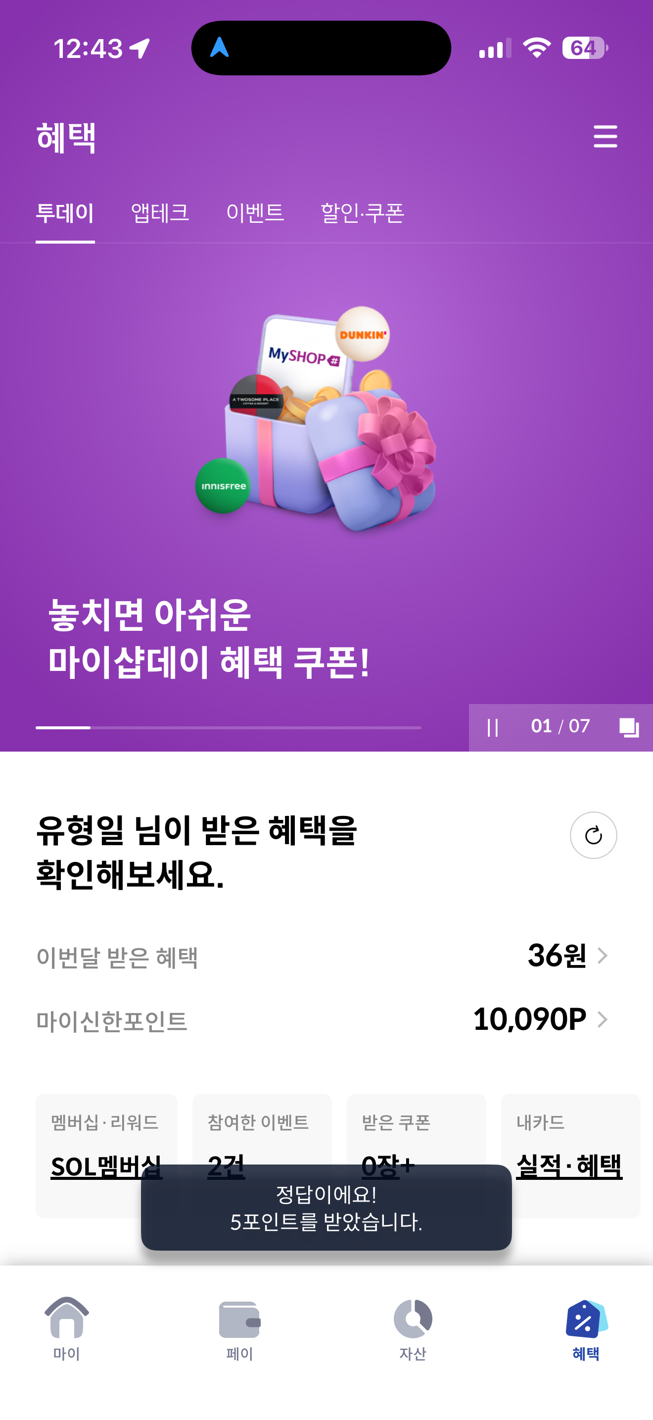 신한카드 퀴즈팡팡 7월 2일 문제입니다