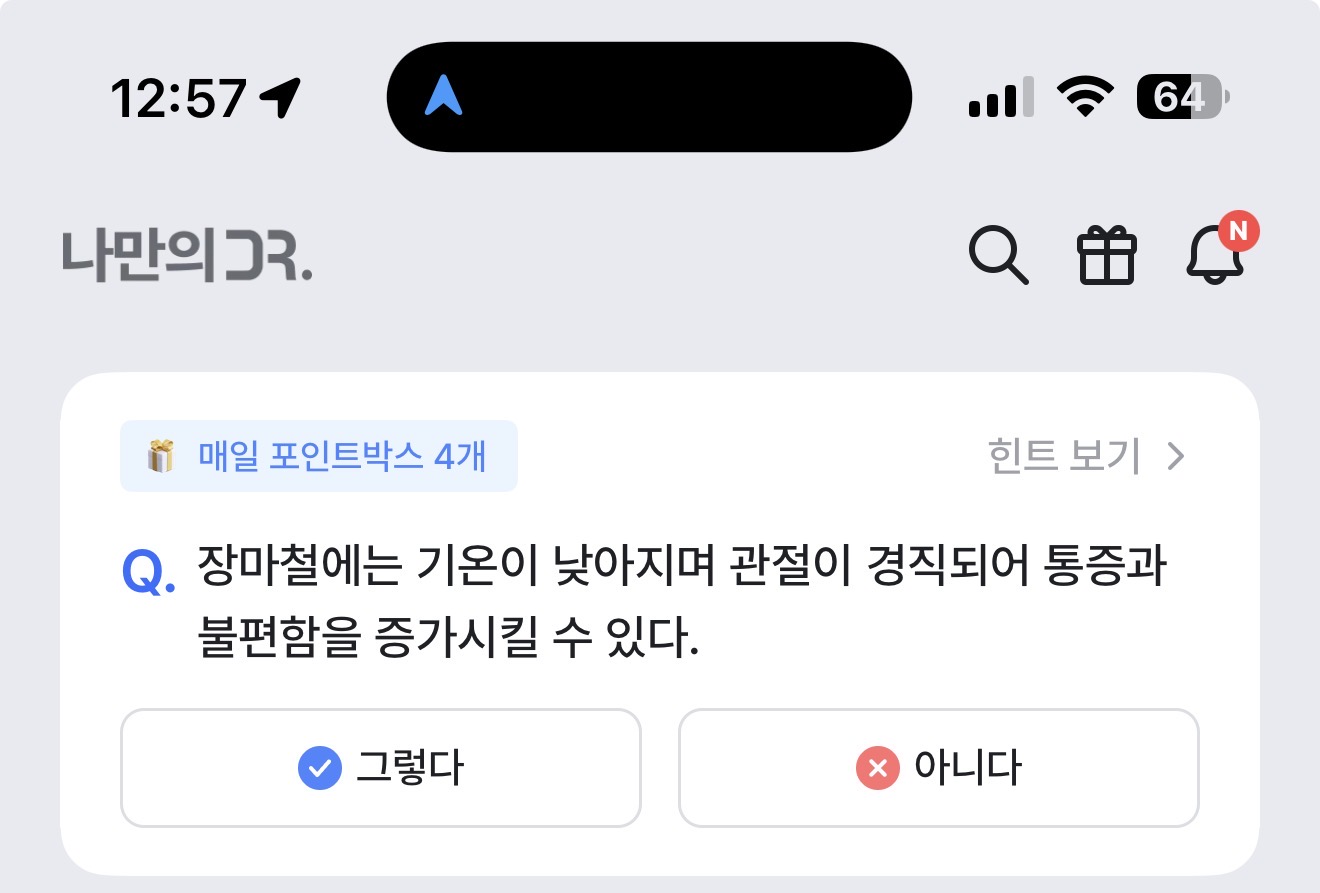장마철에는 기온이 낮아지며 관절이 경직되어 통증과 불편함을 증가시킬 수 있다 그렇다 아니다 선택하면 되는데요. 장마철이 되면 관절 고통으로 괴로워하는 분들 많죠. 그 원인이 기온이 낮아지는 것 때문일까요? 아니면 습해서 그럴까요? 참고하세요