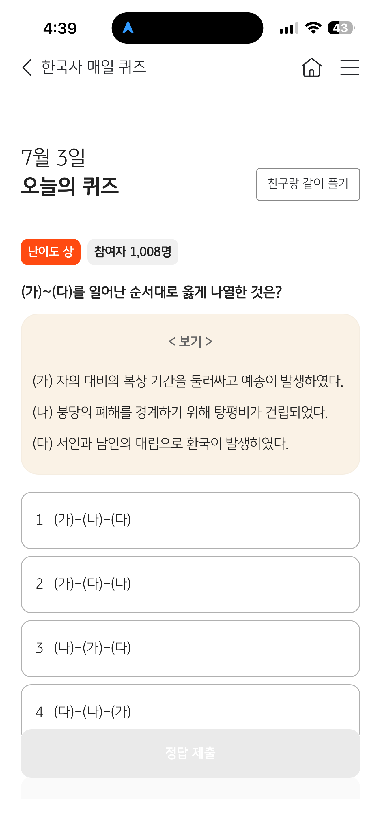 KB스타뱅킹 한국사 매일 퀴즈 7월 3일 문제입니다