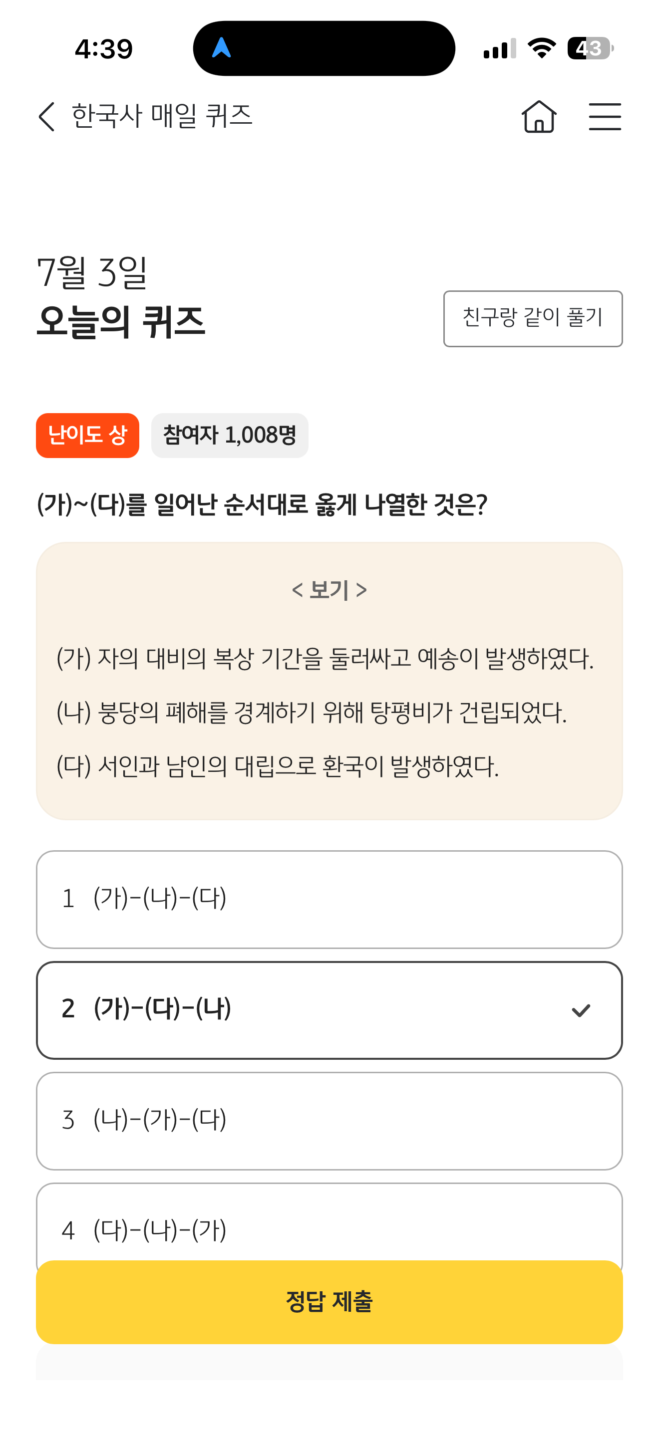 KB스타뱅킹 한국사 매일 퀴즈 7월 3일 문제입니다