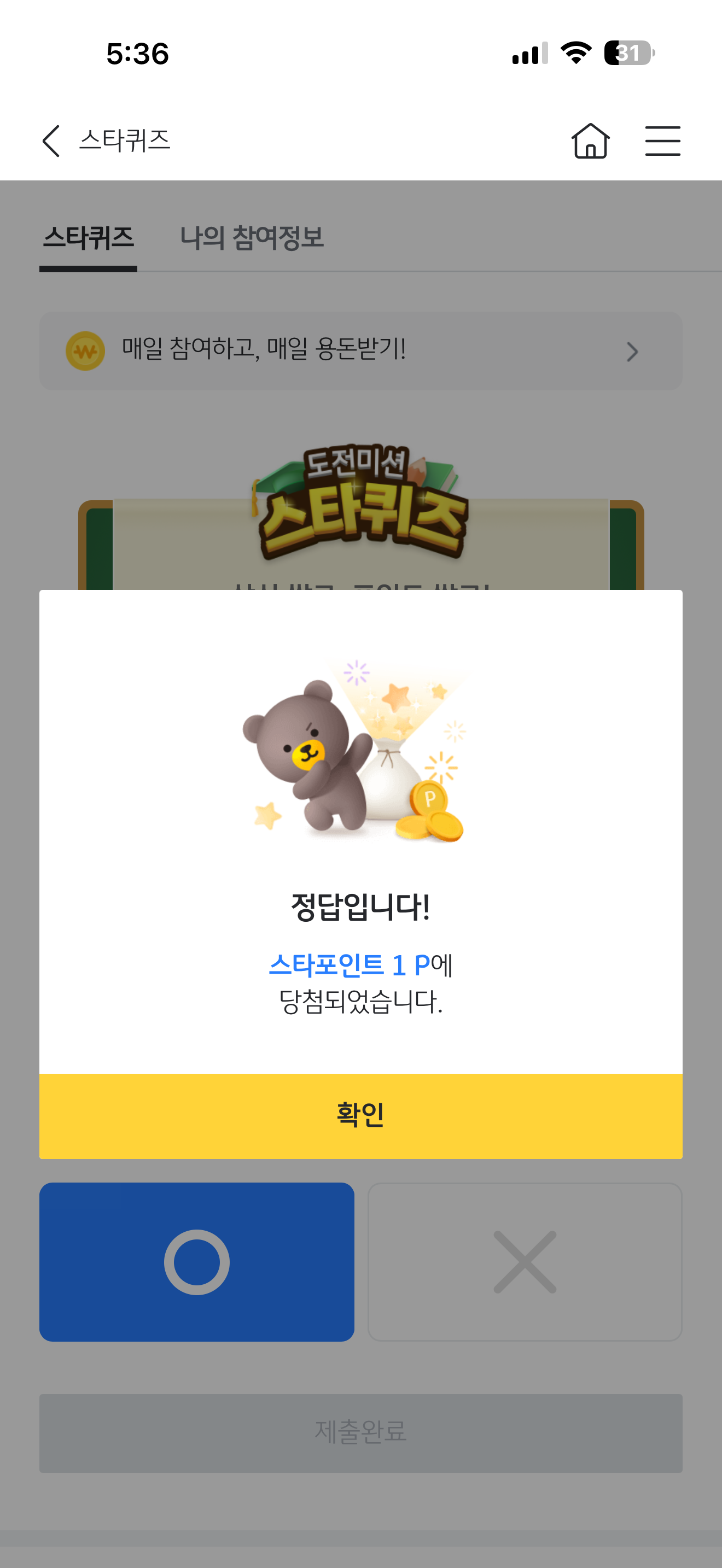 KB스타뱅킹 스타퀴즈 정답은 O 입니다