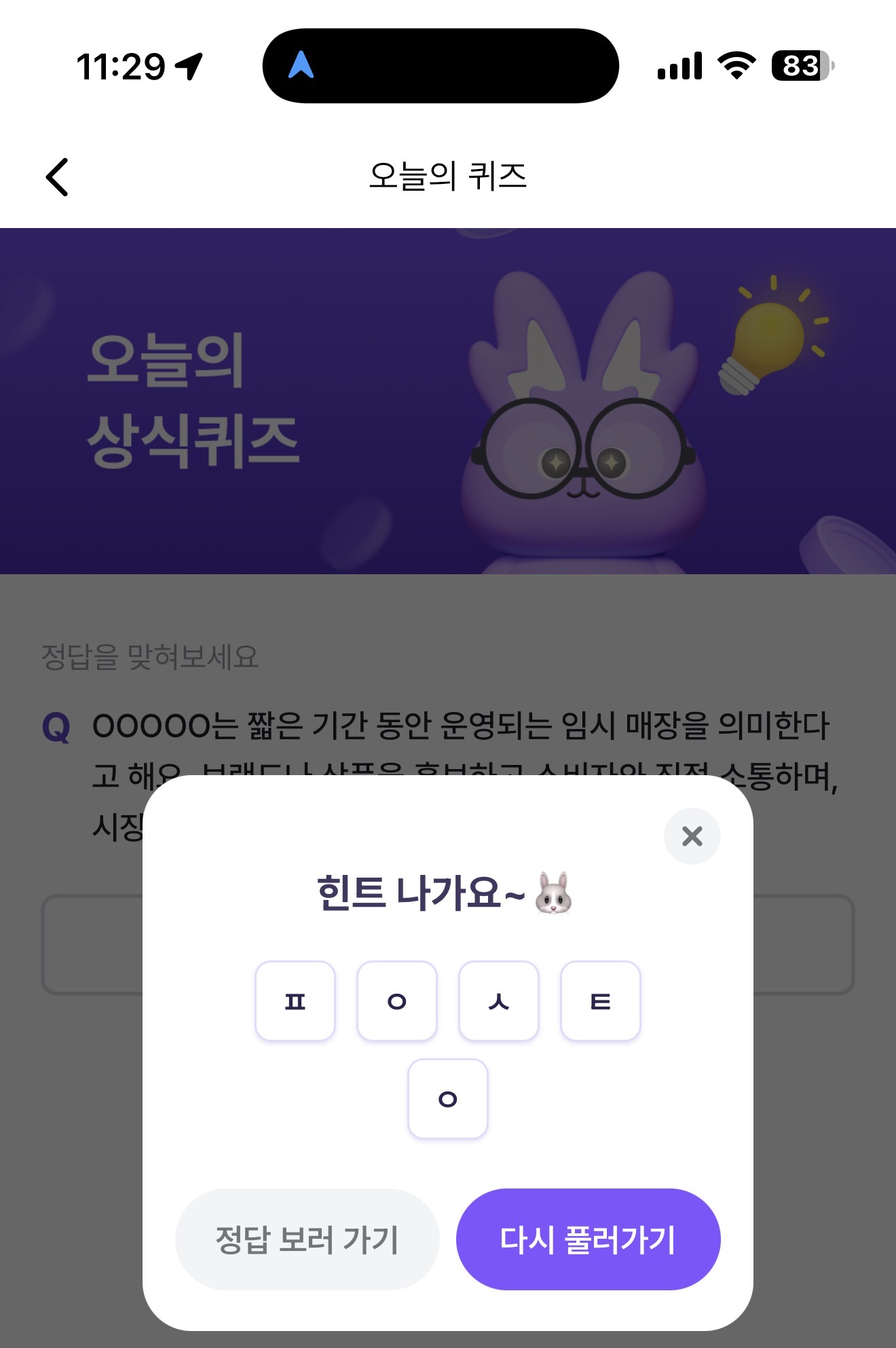 비트버니 오늘의 퀴즈 정답은 팝업스토어 입니다