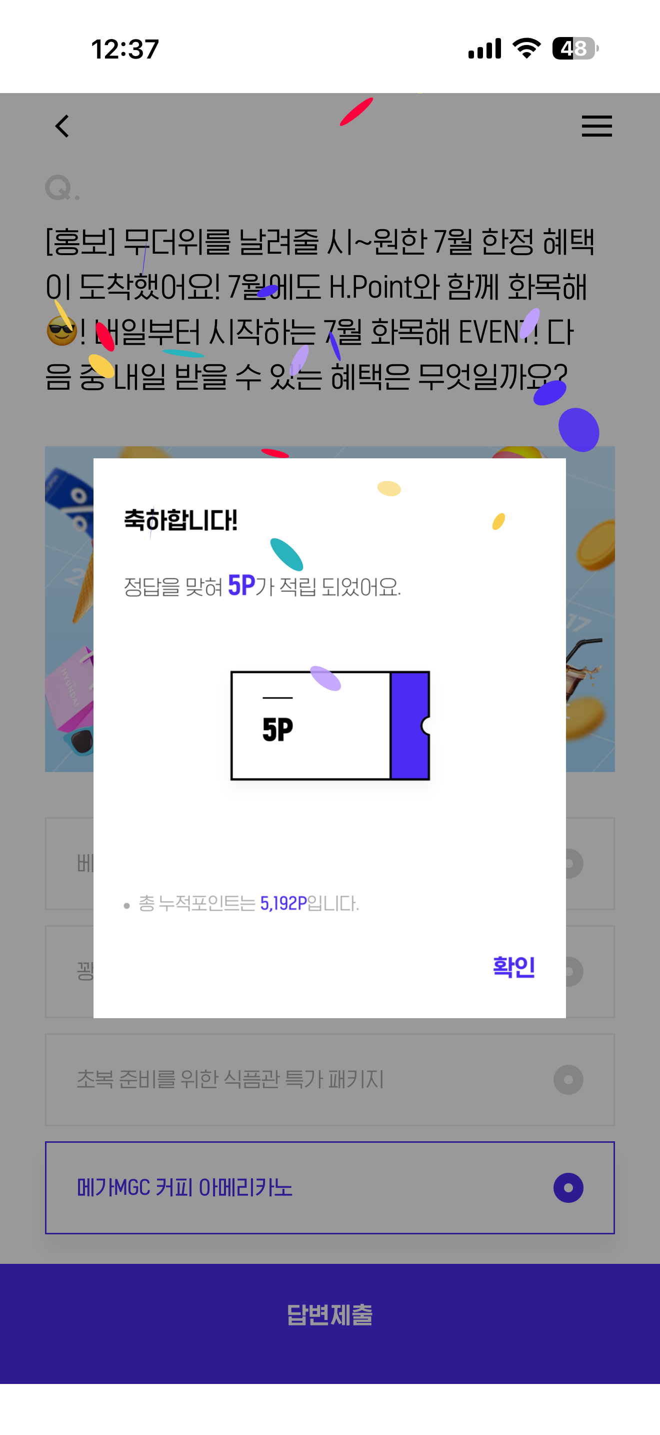 H포인트 퀴즈 정답은 메가MGC 커피 아메리카노 입니다