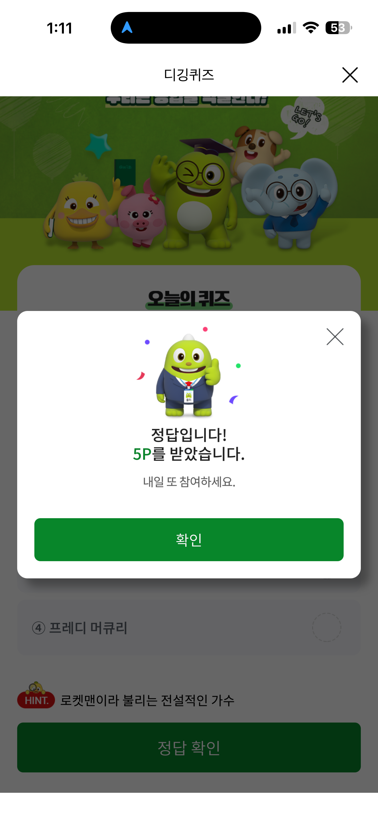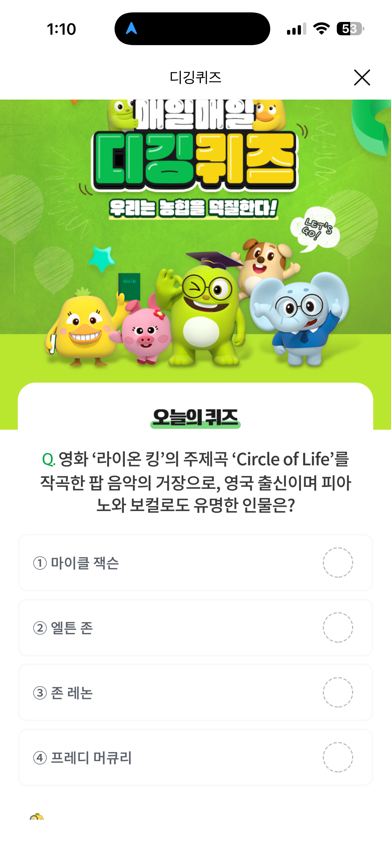 NH올원뱅크 디깅퀴즈 정답은 엘튼 존 입니다
