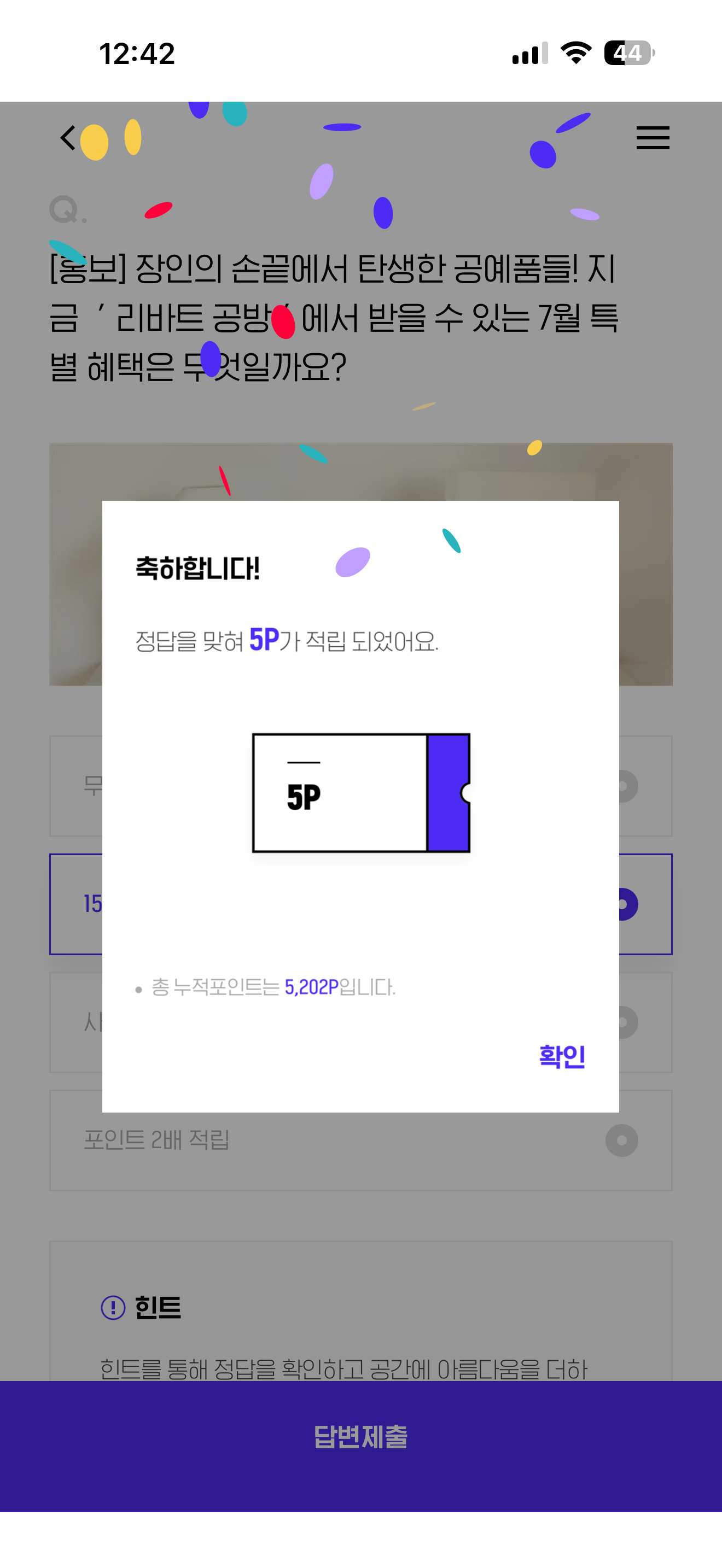 H포인트 퀴즈 정답은 15% 할인 입니다