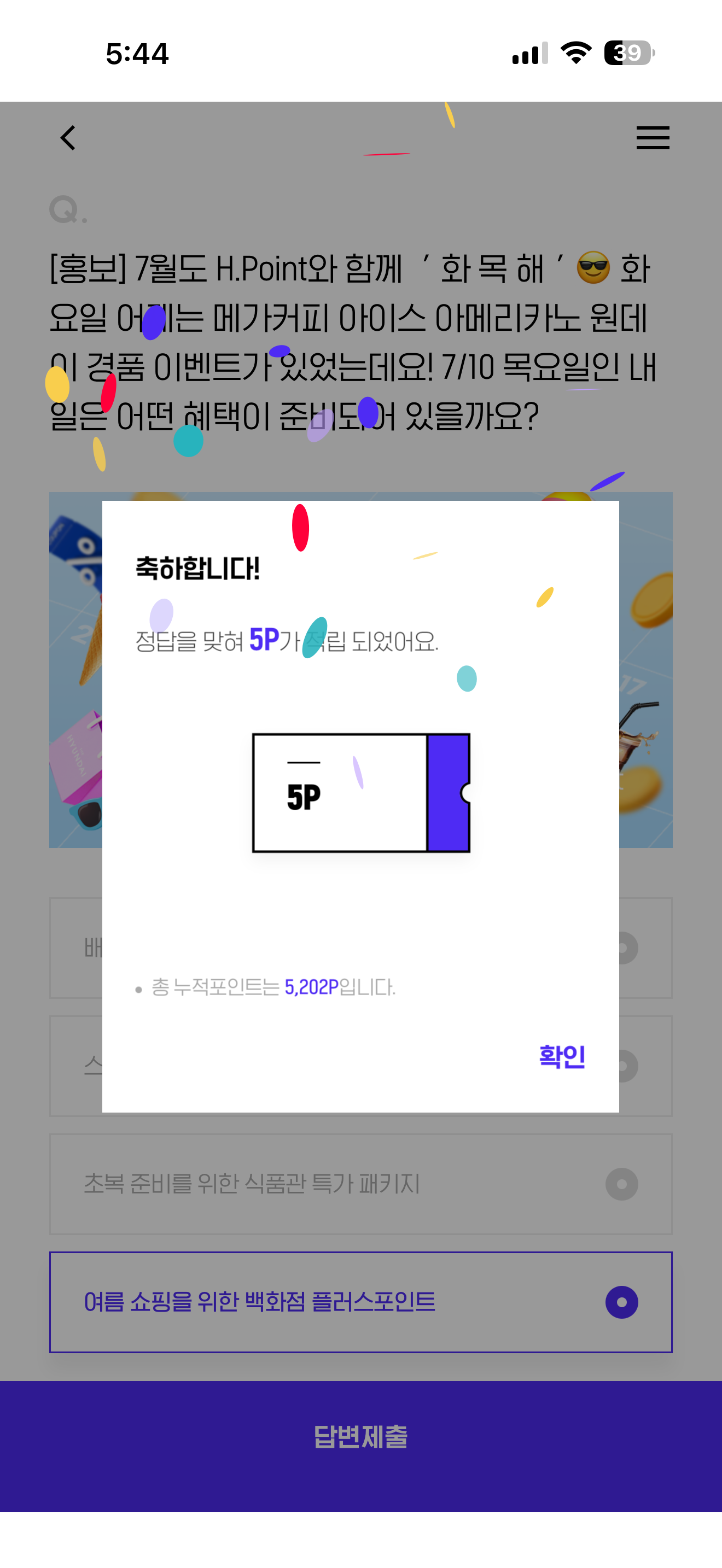 H포인트 퀴즈 정답은 여름 쇼핑을 위한 백화점 플러스포인트 입니다