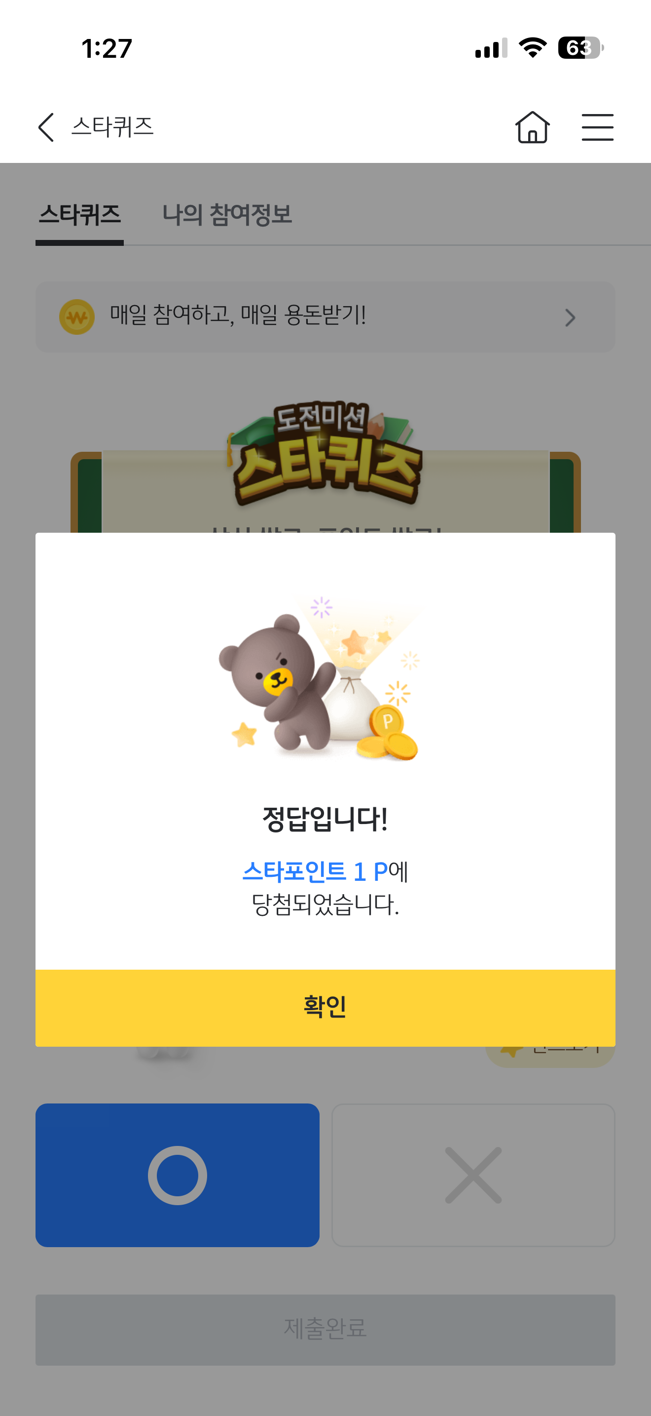 KB스타뱅킹 스타퀴즈 정답은 O 입니다