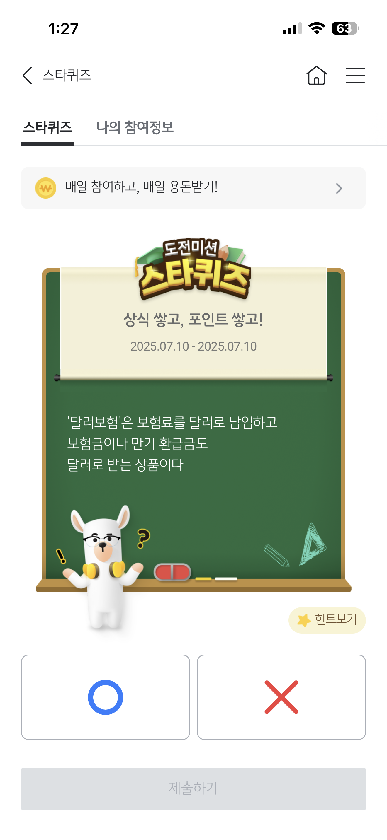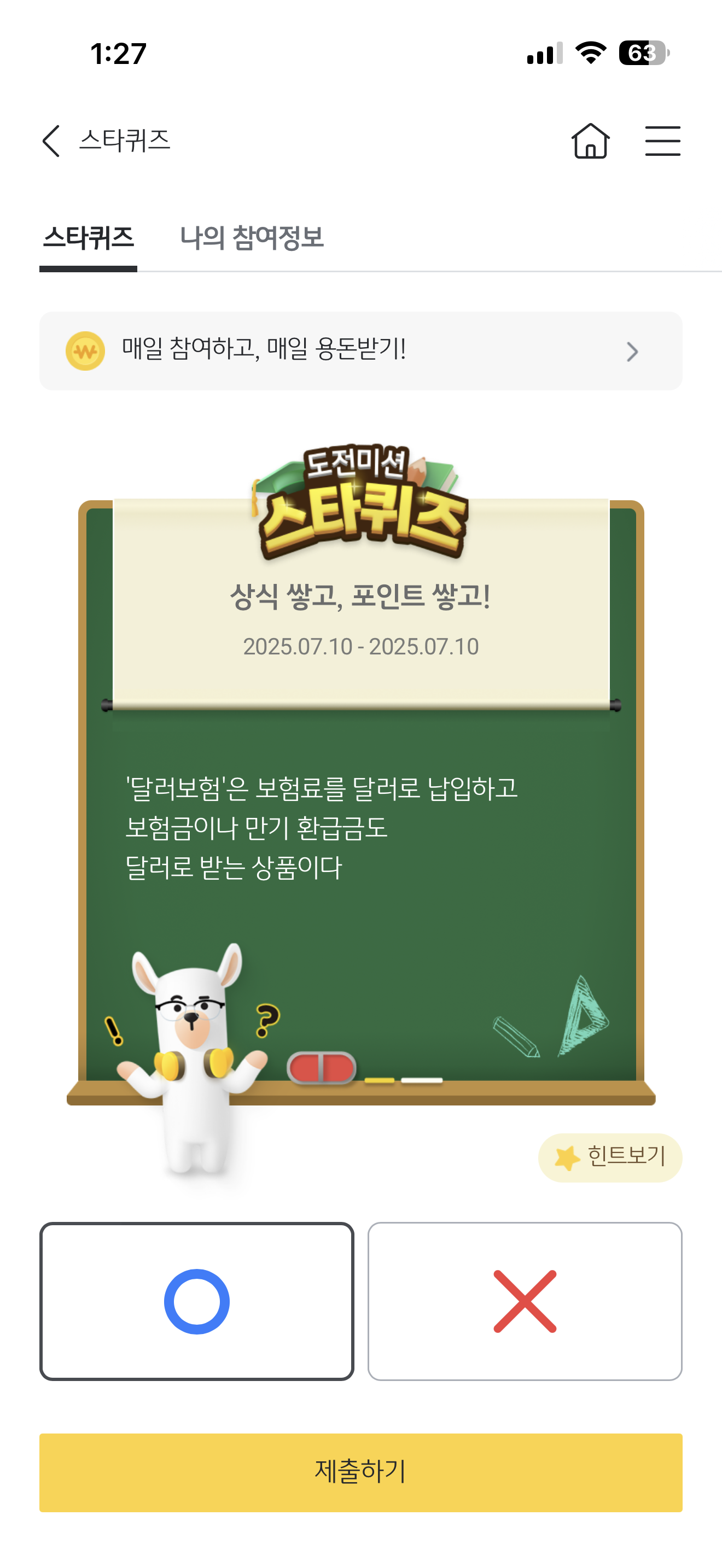 KB스타뱅킹 스타퀴즈 7월 10일 정답('달러보험'은 보험료를 달러로 납입하고 보험금이나 만기 환급금도 달러로 받는 상품이다)