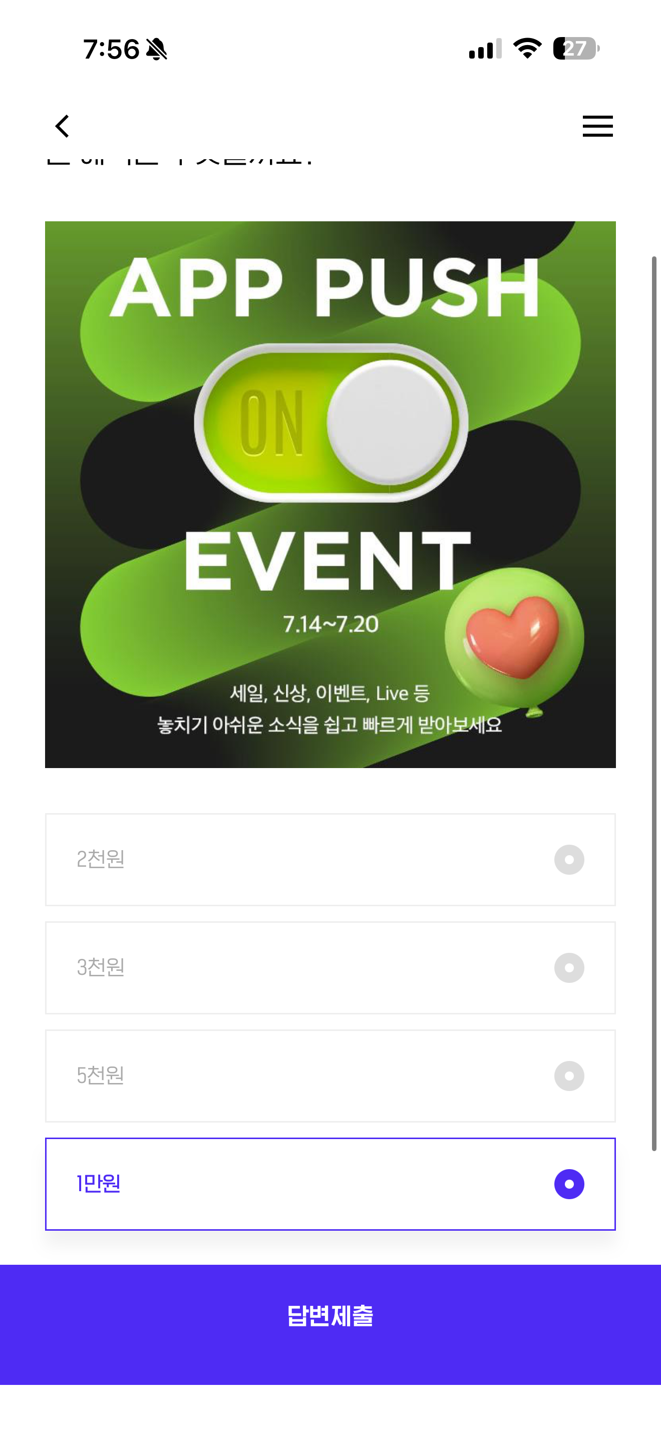 더현대닷컴에서는 앱 PUSH 수신에 동의하면 더머니, 쿠폰, 경품을 드리는 이벤트을 진행 하는데요. 다음 중 동의자 전원에게 주는 이 쿠폰 혜택은 무엇일까요? 보기는 1. 2천원 2. 3천원 3. 5천원 4. 1만원 입니다