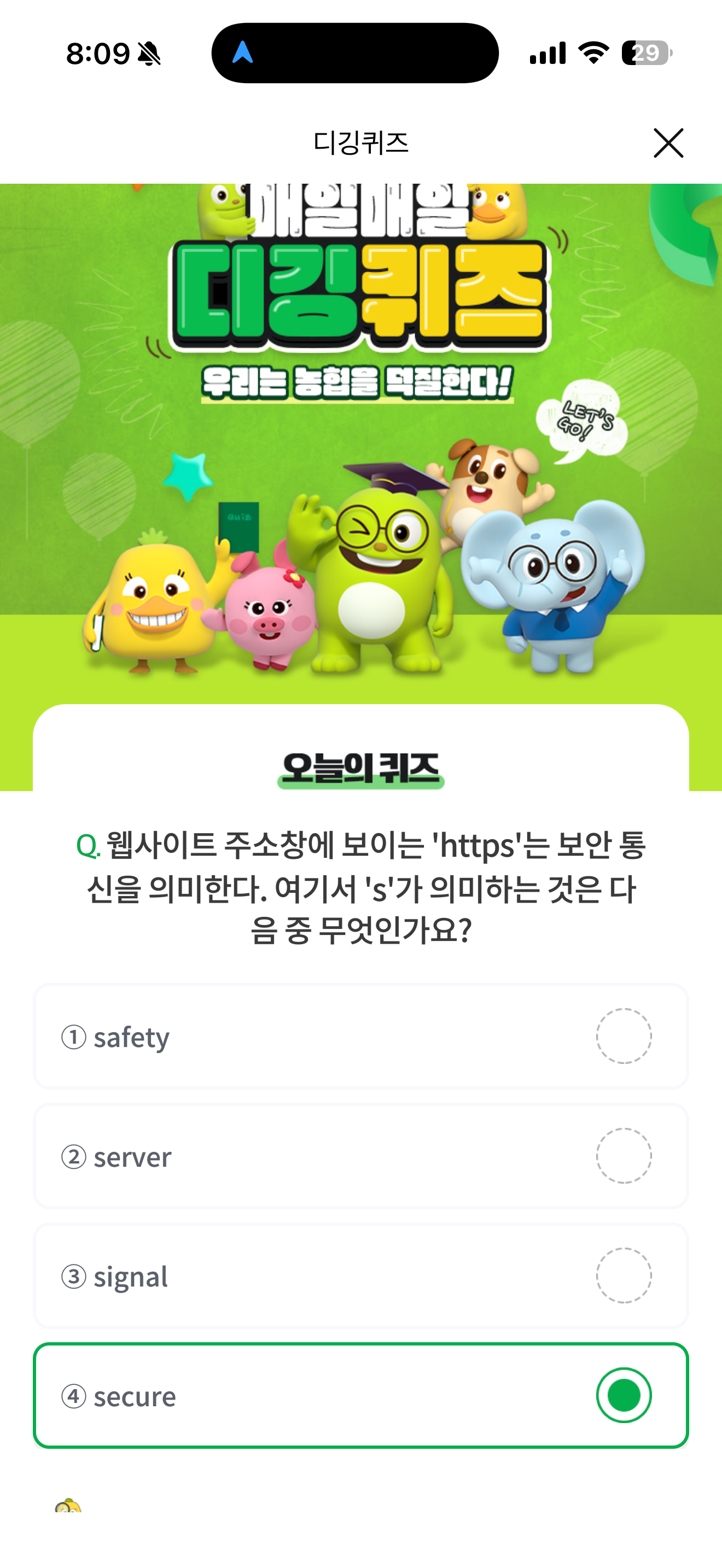 NH올원뱅크 디깅퀴즈 정답은 secure 입니다