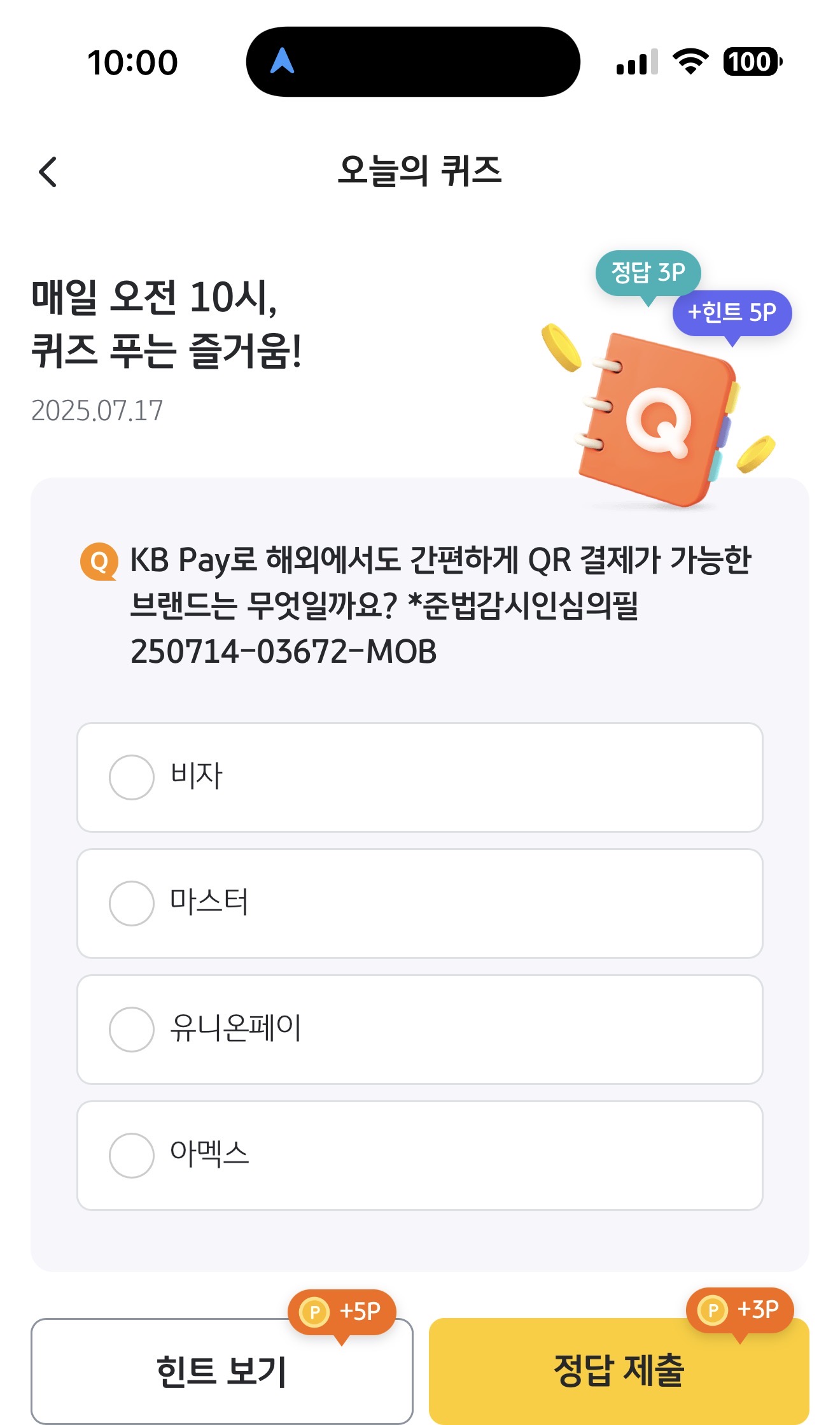 KB Pay 오늘의 퀴즈 7월 17일 정답(KB Pay로 해외에서도 간편하게 QR 결제가 가능한 브랜드는 무엇일까요?)