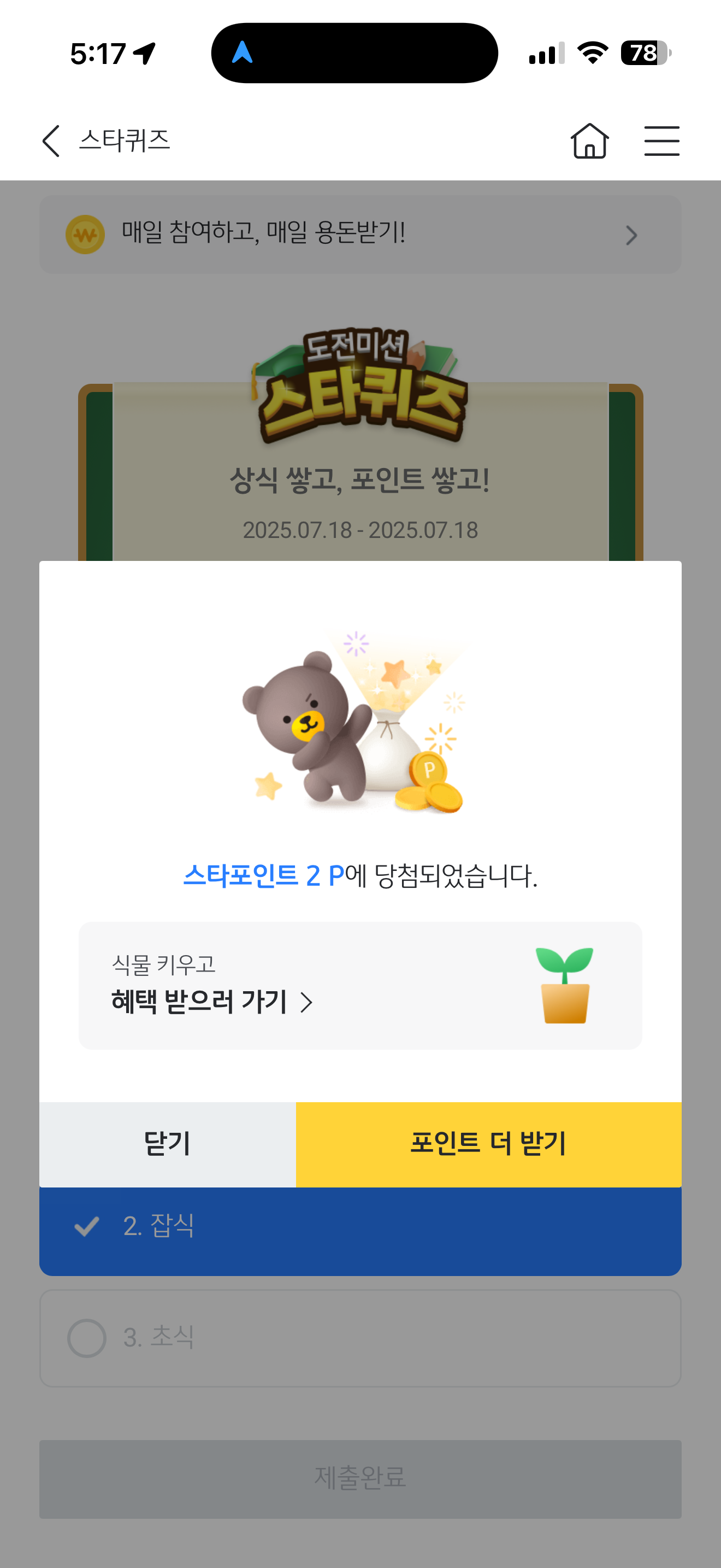 KB스타뱅킹 스타퀴즈 정답은 잡식 입니다