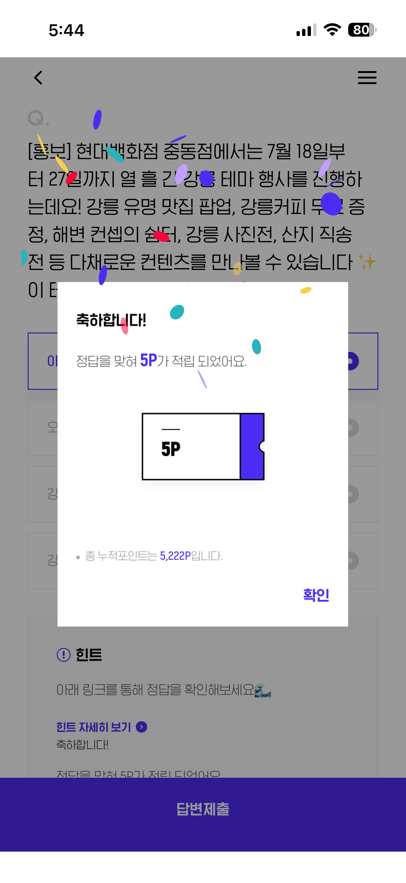 H포인트 퀴즈 정답은 아이 러브 강릉 입니다